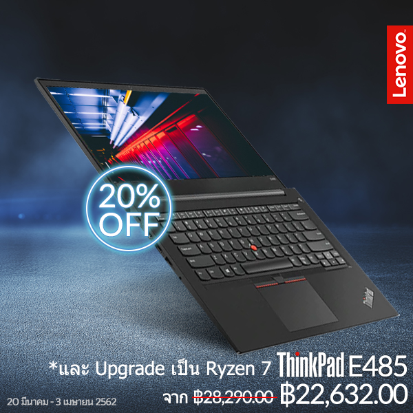 - รับส่วนลดทันที 20% สำหรับผลิตภัณฑ์ ThinkPad E585 ในราคาพิเศษเพียง 22,312 บาท