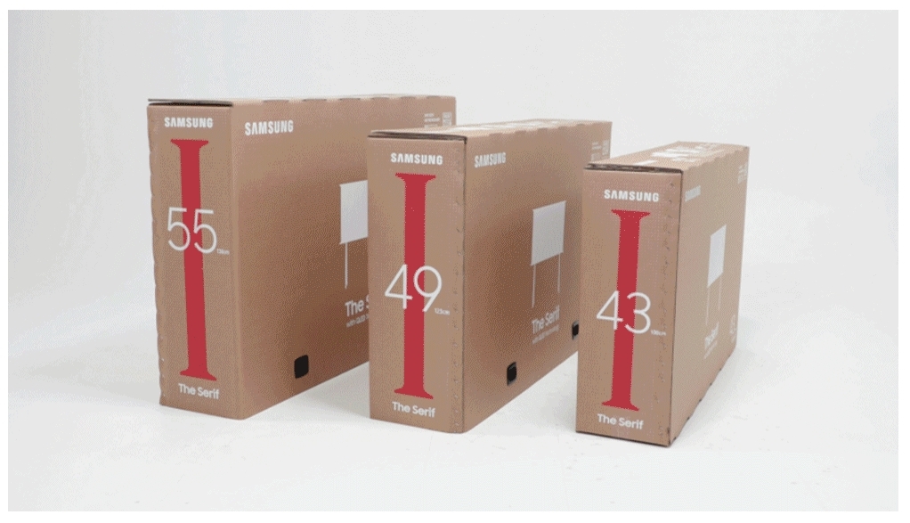ดีไซน์แบบอีโคแพ็กเกจจิ้ง (Eco-packaging) ช่วยให้ผู้บริโภคสามารถอัปไซเคิลได้ โดยการนำบรรจุภัณฑ์มาประยุกต์เป็นชิ้นส่วนเฟอร์นิเจอร์อเนกประสงค์ขนาดเล็ก ที่เมื่อนำมาประกอบกับอุปกรณ์ต่างๆ แล้ว สามารถแปรรูปกล่องกระดาษลูกฟูกอย่างหนาให้กลายเป็นโต๊ะหรือชั้นวางของขนาดเล็กได้ เพียงทำตามหนังสือคู่มือที่มีให้ผ่านการสแกนคิวอาร์โค้ดที่อยู่บนกล่อง โดยอีโคแพ็กเกจจิ้งจะออกสู่ตลาดพร้อมกับซีรีฟ หนึ่งในไลน์อัพทีวีของซัมซุง ภายในครึ่งปีแรกของปี 2563