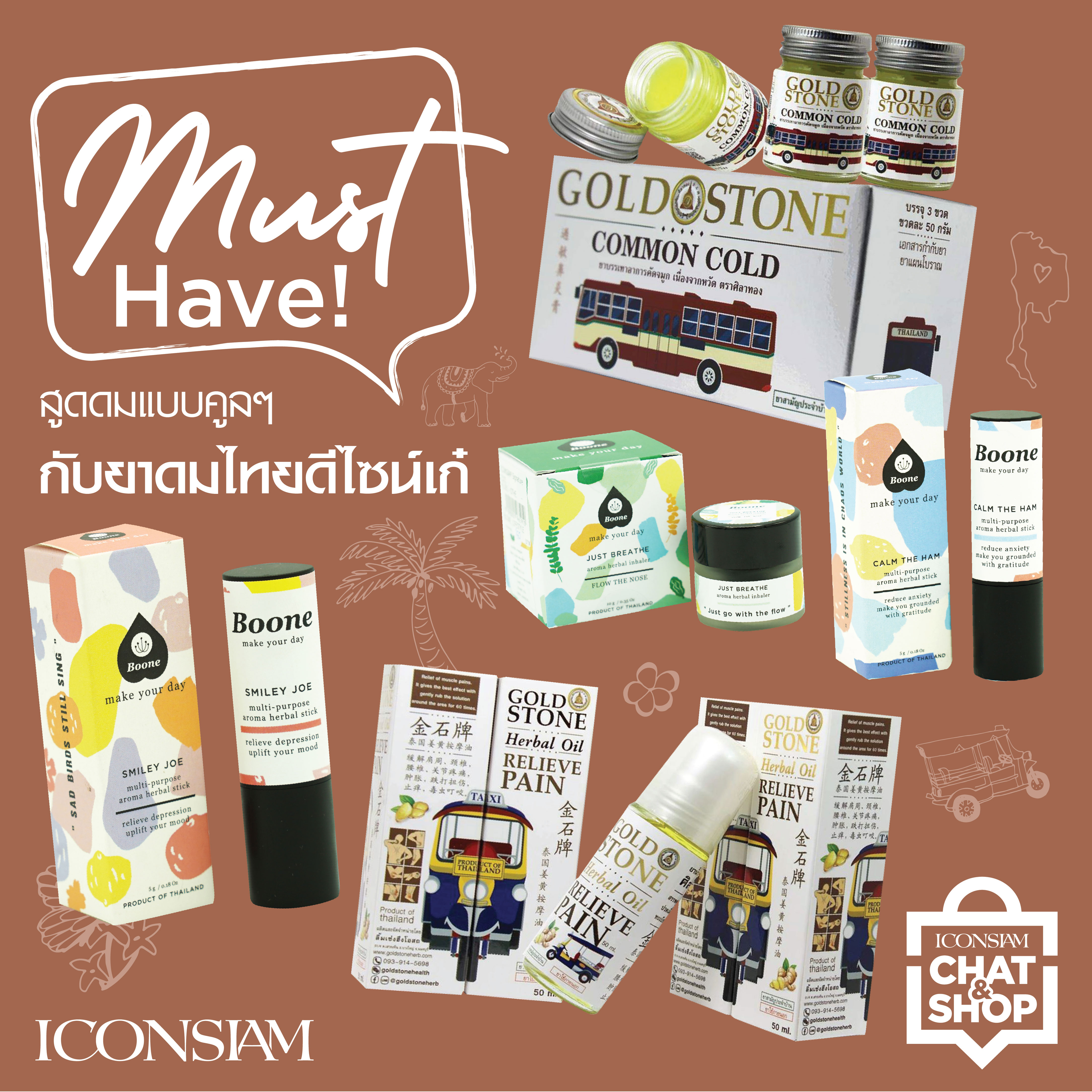 สำหรับสินค้าที่ไอคอนสยามนำเสนอ แบ่งออกเป็น 3 กลุ่ม ได้แก่ สินค้าจาก ICONCRAFT, ICONACTIVE, และ WOMEN’S CLUB ซึ่งเป็นสินค้าที่เหมาะแก่การใช้ชีวิตประจำวันของทุกคน อาทิ สินค้าเพื่อสุขอนามัย และสินค้าที่สนับสนุนการทำงานแบบ Work from Home และยังมีสินค้าครอบคลุมทุกกลุ่มประเภท ทั้ง Health & Beauty, Sports & Travel, Home & Lifestyle, Women’s fashion, Men’s fashion นอกจากนี้ ยังมีสินค้าในโครงการ “Made By Beautiful People” ที่รวบรวมสินค้าจากผู้พิการ ผู้ทุพพลภาพ เด็กพิเศษ หรือผู้ด้อยโอกาส เพื่อเป็นการสร้างรายได้และสนับสนุนให้มีอาชีพอย่างยั่งยืน