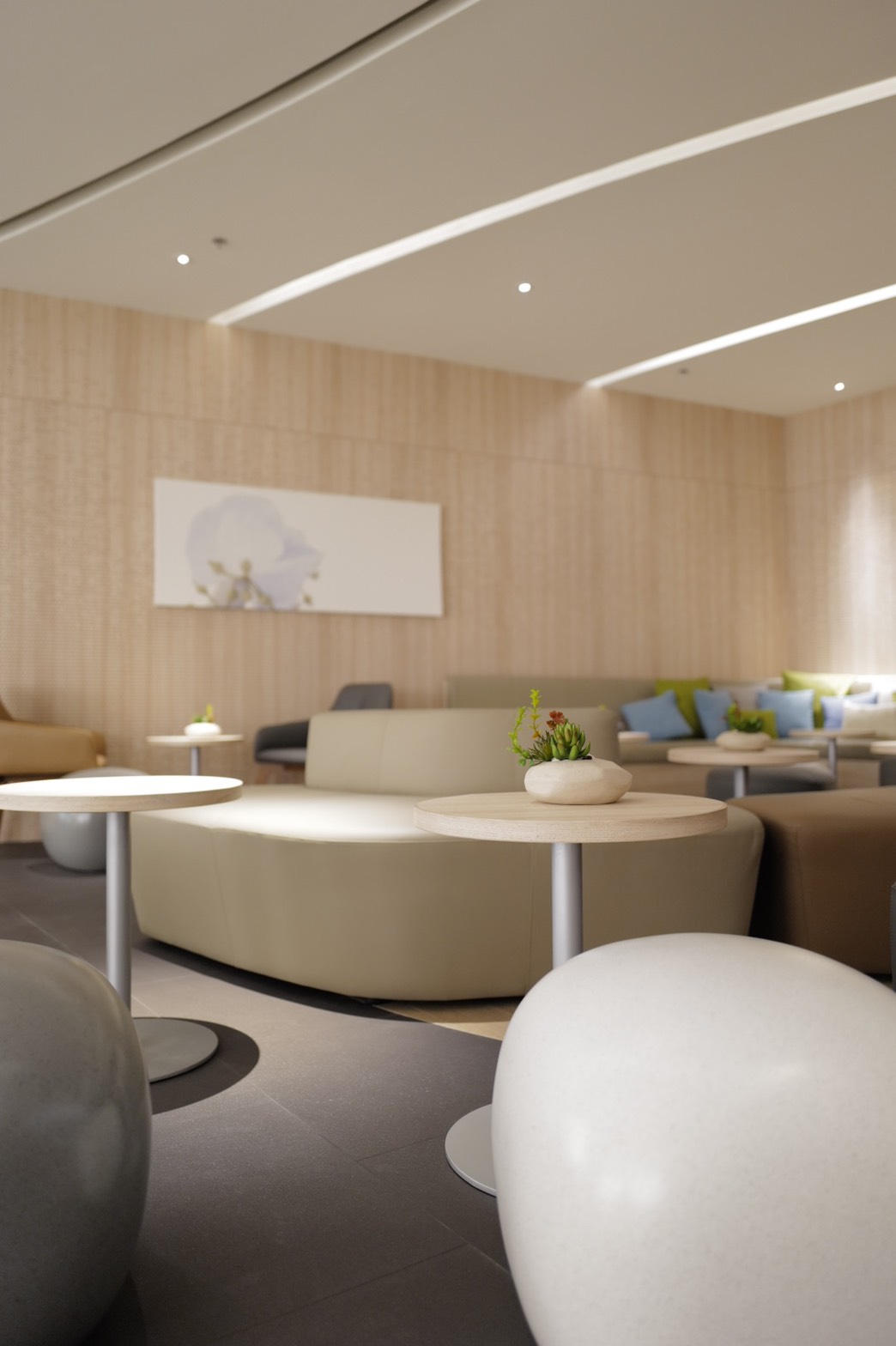 ตกแต่งภายใต้คอนเซ็ปต์ “Elements of Nature” ซึ่งนำเอาธาตุทั้ง 4 มาผสานกับการออกแบบภายในได้อย่างลงตัว โดยเลือกใช้สีเอิร์ธโทนและวัสดุที่มีพื้นผิวแบบธรรมชาติ นำส่วนเว้าส่วนโค้งให้เกิดความรู้สึกลื่นไหลเหมือนสายน้ำ จัดสัดส่วนความกว้างของพื้นที่ และความสูงของเพดานให้โปร่งโล่ง หรือการเลือกใช้สีของวัสดุตกแต่ง การจัดแสงสว่างให้บรรยากาศที่อบอุ่นเป็นกันเอง