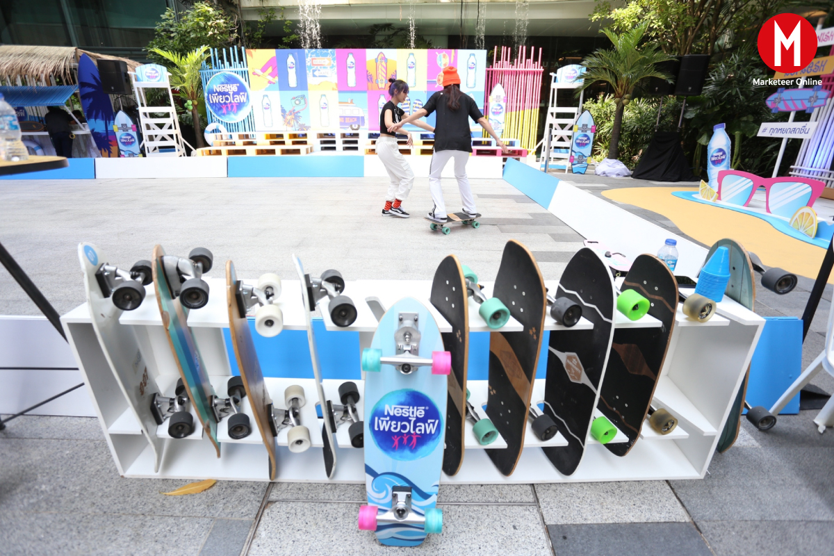 โดยงานนี้ แบรนด์ เนสท์เล่ เพียวไลฟ์ ปรับกลยุทธ์การตลาดใหม่ให้เข้าใจและเข้าใกล้กลุ่มผู้บริโภคมากขึ้น กับลานกิจกรรมเซิร์ฟสเก็ต ใจกลางห้างสรรพสินค้า The EmQuartier ในสไตล์บีช สีสันสดใสเข้ากับรับซัมเมอร์ เพื่อให้เหล่าสาวกเซิร์ฟสเก็ตทั้งมือใหม่ มือโปร ได้ประสบการณ์ที่สดชื่นไม่ซ้ำใคร สนุกสนานในแบบฉบับ Nestlé Pure Life