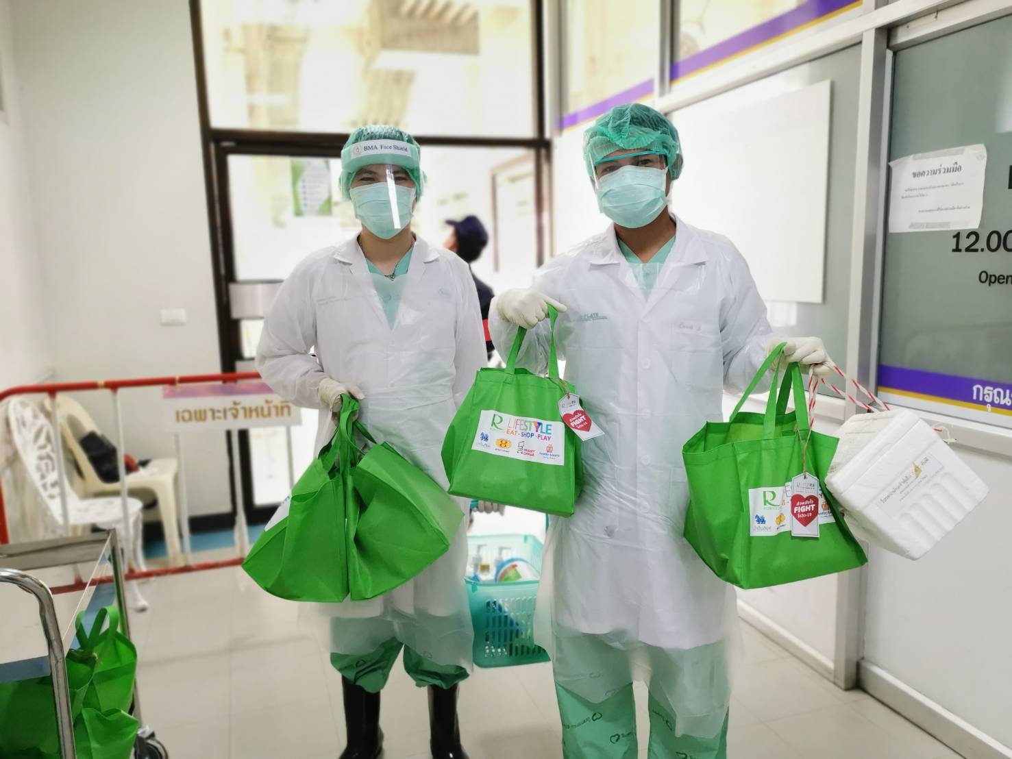 การผนึกกำลังกับ 4 พันธมิตรเครื่องดื่ม และร้านอาหารภายในศูนย์การค้าฯ คือ น้ำดื่มสิงห์, ฮะจิบัง ราเมน, มิสเตอร์ โดนัท และอานตี้ แอนส์ รวมทั้งร้านค้าท้องถิ่น ร่วมมอบถุงน้ำใจ ซึ่งประกอบด้วยอาหารและเครื่องดื่ม จำนวน 3,000 ชุด รวมมูลค่ากว่า 700,000 บาท ให้แก่ทีมบุคลากรทางการแพทย์ผู้เสียสละทุกท่านใน 24 โรงพยาบาล ในจังหวัดที่โรบินสันไลฟ์สไตล์ตั้งอยู่ทั่วประเทศ