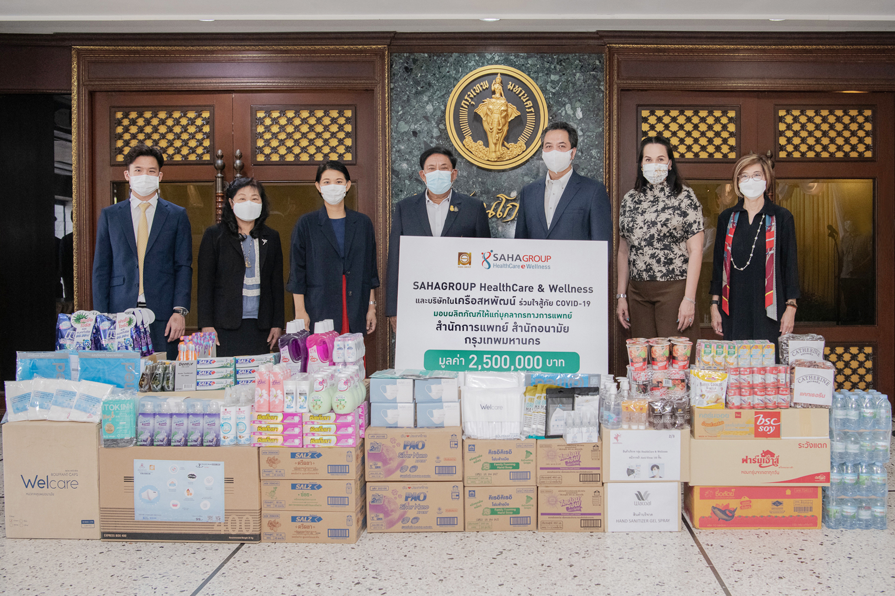 โดยความช่วยเหลือที่ส่งไปยัง สำนักการแพทย์ และสำนักอนามัย กรุงเทพมหานคร นั้น สหพัฒน์ได้มอบปลากระป๋องซื่อสัตย์ 1,000 กระป๋อง น้ำแร่มองต์เฟลอ 1,000 ขวด ในนามกลุ่ม SAHAGROUP Health Care & Wellness เพื่อสนับสนุนการปฏิบัติหน้าที่ของบุคลากรทางการแพทย์ในการดูแลผู้ป่วยในสถานพยาบาลสังกัดกรุงเทพมหานคร และชุมชนในเขตกรุงเทพมหานคร ในส่วนของ สภากาชาดไทย ได้สนับสนุนโครงการมอบธารน้ำใจสู่ผู้สูงอายุที่ช่วยเหลือตัวเองไม่ได้ทั่วประเทศ โดยมอบบะหมี่ซื่อสัตย์ 300,060 ซอง น้ำเต้าหู้โทฟุซัง 50,400 กล่อง เพื่อมอบให้กับผู้ป่วยติดเตียง ผู้ป่วยติดบ้าน ผู้พิการ ผู้สูงอายุ และผู้ที่ไม่สามารถช่วยเหลือตัวเองได้ ทางด้าน โรงพยาบาลวชิรพยาบาล ได้มอบเงิน 1 ล้านบาท ให้กับโครงการเตียงต่อชีวิต ผู้ป่วยโควิด-19 เพื่อสร้างห้องความดันลบรักษาผู้ป่วยโควิด-19 ที่อยู่ในภาวะวิกฤต