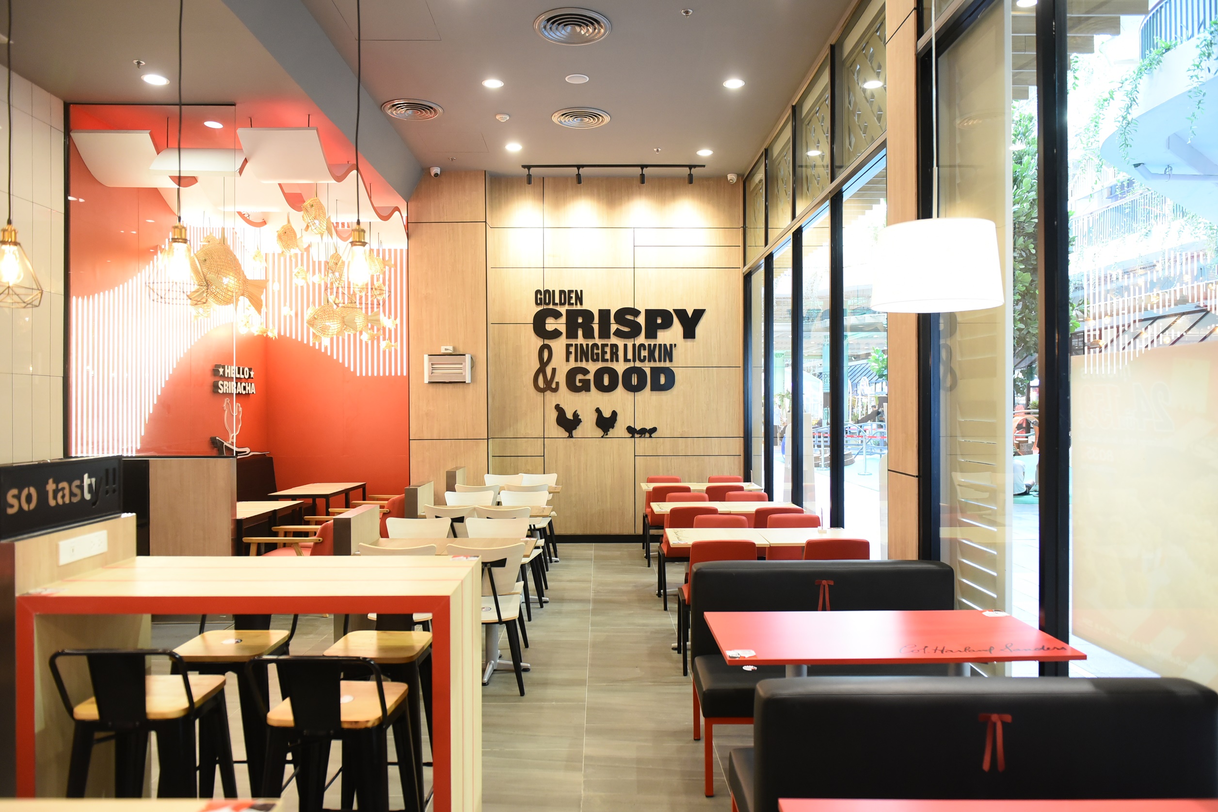 ยังคงเดินหน้าขยายสาขาต่อเนื่อง โดยปรับรูปแบบและคอนเซ็ปต์ให้ตอบโจทย์ความต้องการของลูกค้าที่เปลี่ยนไปให้มากที่สุด สำหรับร้านเคเอฟซี ที่บริหารโดย ซีอาร์จี สาขาที่ 300 นี้ เราปรับภาพลักษณ์ของแบรนด์ให้เข้ากับไลฟ์สไตล์ของลูกค้า ด้วยการประยุกต์ Local Art and Crafts และกลิ่นอายของทะเลศรีราชาเข้าไปที่มุมด้านในของร้าน โดยเลือกใช้คลื่นทะเลที่ให้ความเป็นศรีราชา ผสมผสานเข้ากับความเป็นเอกลักษณ์ของ เคเอฟซี ได้อย่างลงตัว และยังคงมีความทันสมัยด้วยมุมถ่ายรูปเก๋ ๆ ให้ได้แชร์ลงโซเชียลมีเดีย เพื่อที่จะเพิ่มความเชื่อมโยงระหว่างตัวแบรนด์ เคเอฟซี กับกลุ่มลูกค้าของเราให้ได้มากยิ่งขึ้น และให้เข้ากับคอนเซ็ปต์ของศูนย์การค้าเซ็นทรัล ศรีราชา ที่ตั้งใจจะให้เป็น destination ของการพักผ่อนหย่อนใจของชาวศรีราชา