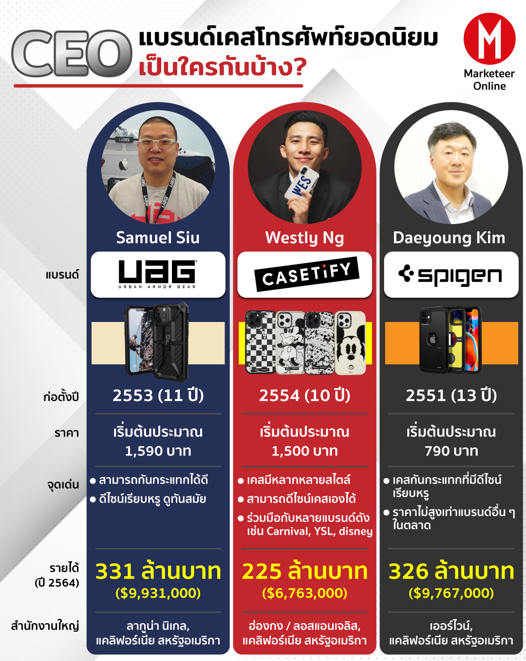 เราจะพามาส่องแบรนด์เคสโทรศัพท์มือถือยอดนิยม 3 แบรนด์ในตลาด ที่ต้องบอกก่อนว่า CEO ทั้ง 3 คนนี้ล้วนมีเชื้อสายเอเชียกันทั้งหมดเลยล่ะ
