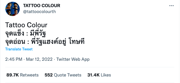แอคเคานต์ @tattoocolourth ทาง Twitter (121,553 เอนเกจเมนต์)