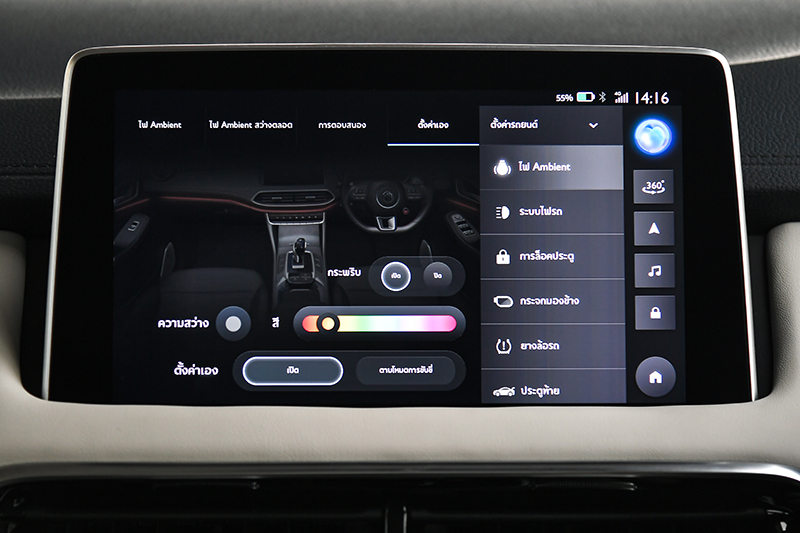 ภายในห้องโดยสารโดดเด่นด้วยสี 2-TONE MONACO BLUE เก็บทุกรายละเอียดประณีต หรูหรา พรีเมียม ในทุกสัมผัสด้วยวัสดุ SOFT TOUCH เบาะนั่งคู่หน้าปรับไฟฟ้า และเป็น Sport Bucket Seat ที่หุ้มด้วย Alcantara เรียกว่ารถหรูมีอะไร รถ MG ก็มีแบบนั้น ปรับอารมณ์ได้ตามใจสั่ง ทั้งแสง และเสียง กับ INTERACTIVE AMBIENT LIGHT และลำโพง BOSE 8.1 Sound System ให้ทุกการเดินทางเป็นส่วนตัวด้วย NVH LUXURY SILENCE SPACE ที่จะช่วยตัดเสียงรบกวนกายนอก ความกว้างขวางตามสไตล์รถเอสยูวี ตอบโจทย์ทุกรูปแบบของการใช้ชีวิตทั้งผู้ขับขี่และผู้โดยสารในทุกที่นั่ง