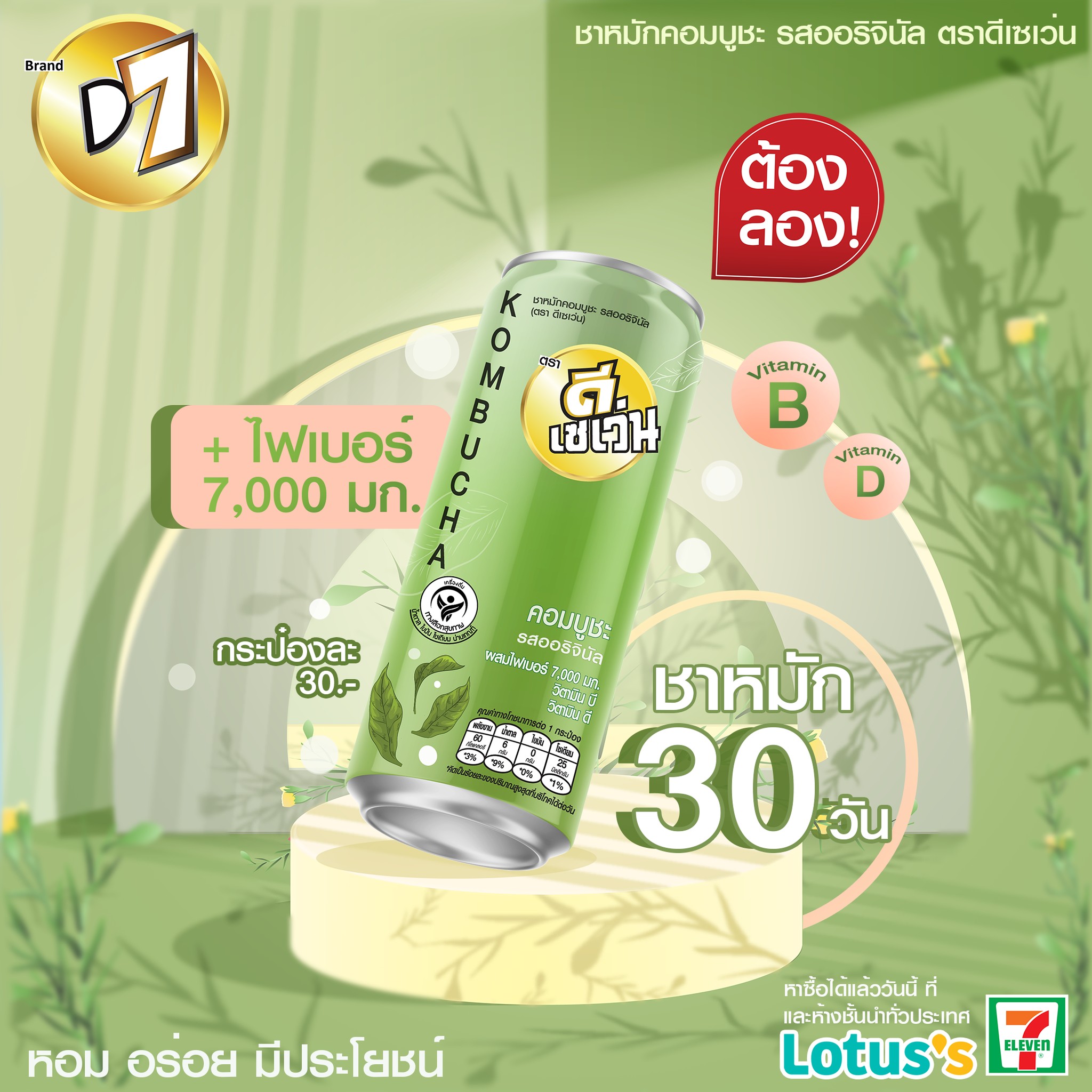 จากข้างต้นจะเห็นว่า D7 เริ่มให้ความสนใจเครื่องดื่มเพื่อสุขภาพมากขึ้น และเป็นที่ชัดเจนเมื่อเปิดตัว “D7 คอมบูชะ” เครื่องดื่มเพื่อสุขภาพ ที่ทำจากการนำชาไปหมักกับจุลินทรีย์สายพันธุ์ที่มีประโยชน์ต่อร่างกาย โดยชาที่หมักออกมาจะมีรสชาติเปรี้ยวอมหวานแถมยังอุดมไปด้วยวิตามินและคุณประโยชน์อีกมากมาย