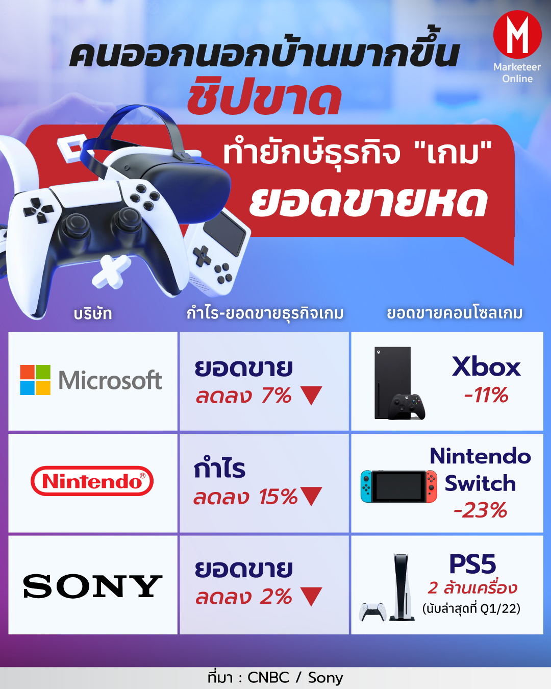 | Sony | ยอดขายลดลง 2% | PS5 / 2 ล้านเครื่อง (นับล่าสุดที่ Q1/22) |