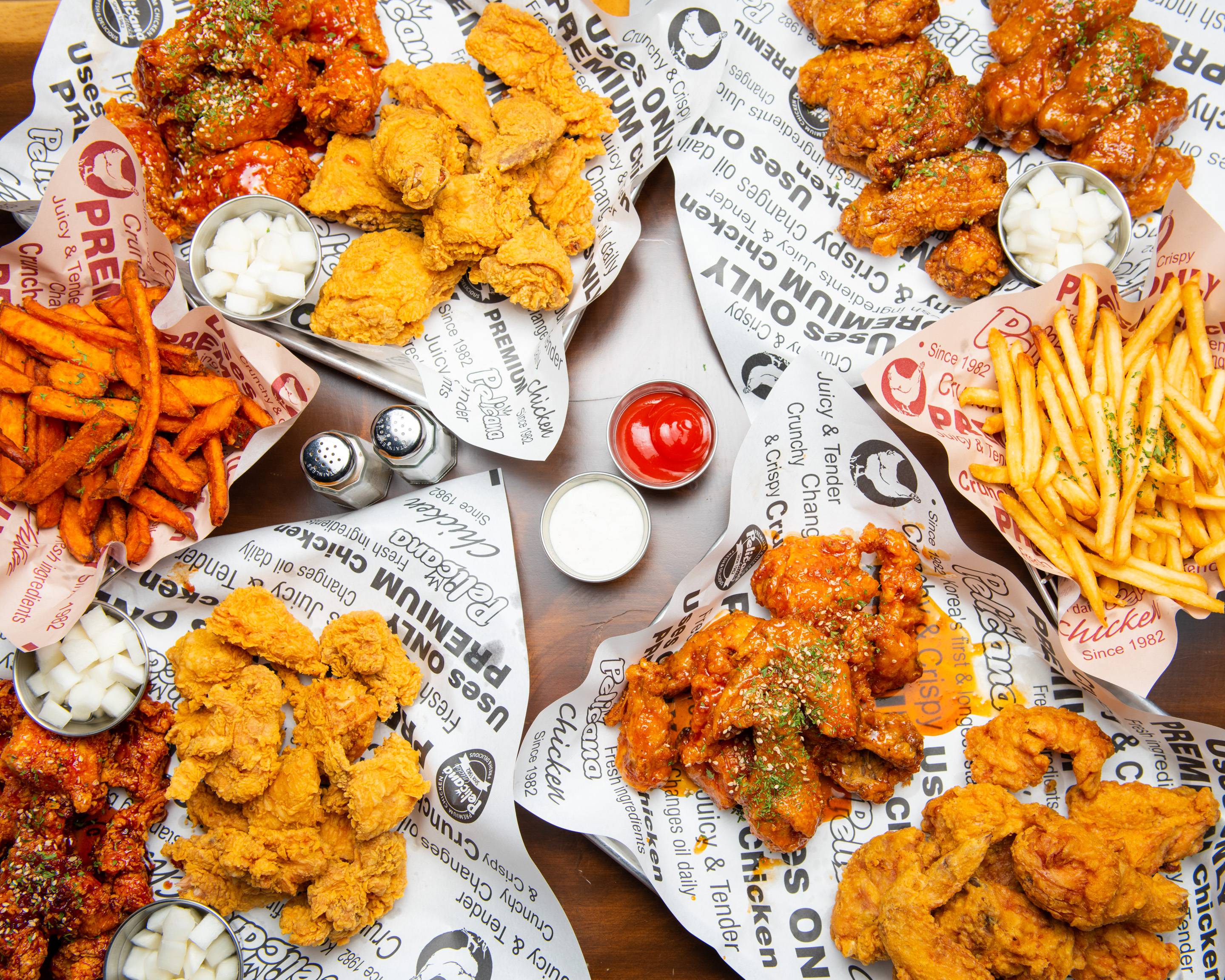 Pelicana มีสาขากว่า 1,100 แห่ง เปิดธุรกิจในปี 1982 แบรนด์นี้เป็นหนึ่งในแบรนด์ดั้งเดิมที่ผสมผสานคิดค้นไก่ซอสเปรี้ยวหวาน จึงได้รับการยกย่องให้เป็นแบรนด์ดั้งเดิมของไก่ทอดเกาหลี