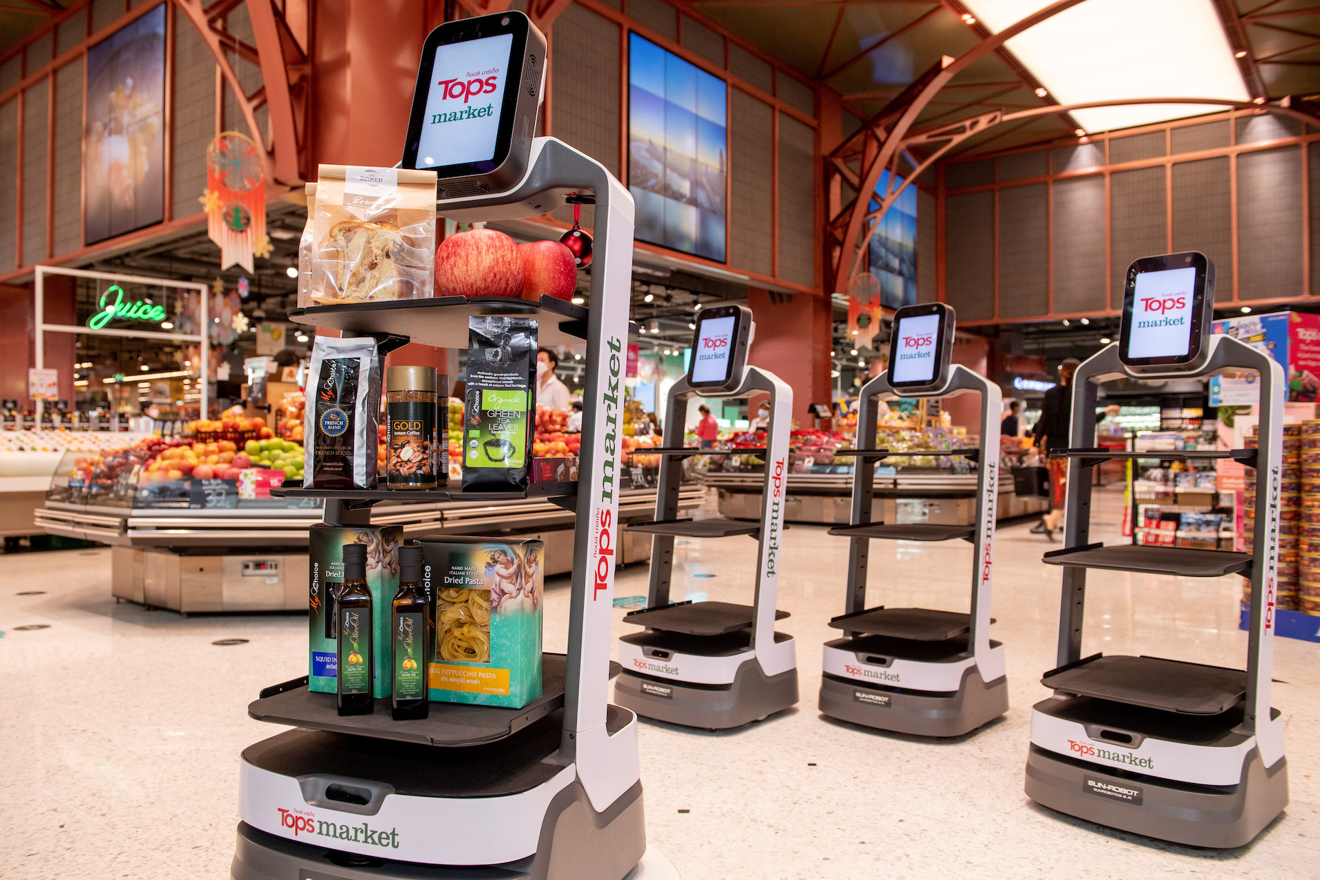 หรือ การเปิดตัวหุ่นยนต์ผู้ช่วยบริการอัจฉริยะ (AI Service Robot) สนับสนุนการใช้พลังงานสะอาดทั้งการใช้ตู้เย็นประหยัดพลังงาน จัดให้มีจุดชาร์จรถยนต์พลังงานไฟฟ้า EV (Electric Vehicle) ตลอดจนเป็นพาร์ตเนอร์กับสตาร์ตอัปพัฒนานวัตกรรมอย่างไม่หยุดยั้งเพื่อมอบประสบการณ์ที่ดีที่สุดให้ลูกค้า ทำให้ท็อปส์เป็นผู้นำในด้าน Innovative Supermarket ที่พร้อมรองรับทุกเทรนด์ของผู้บริโภค