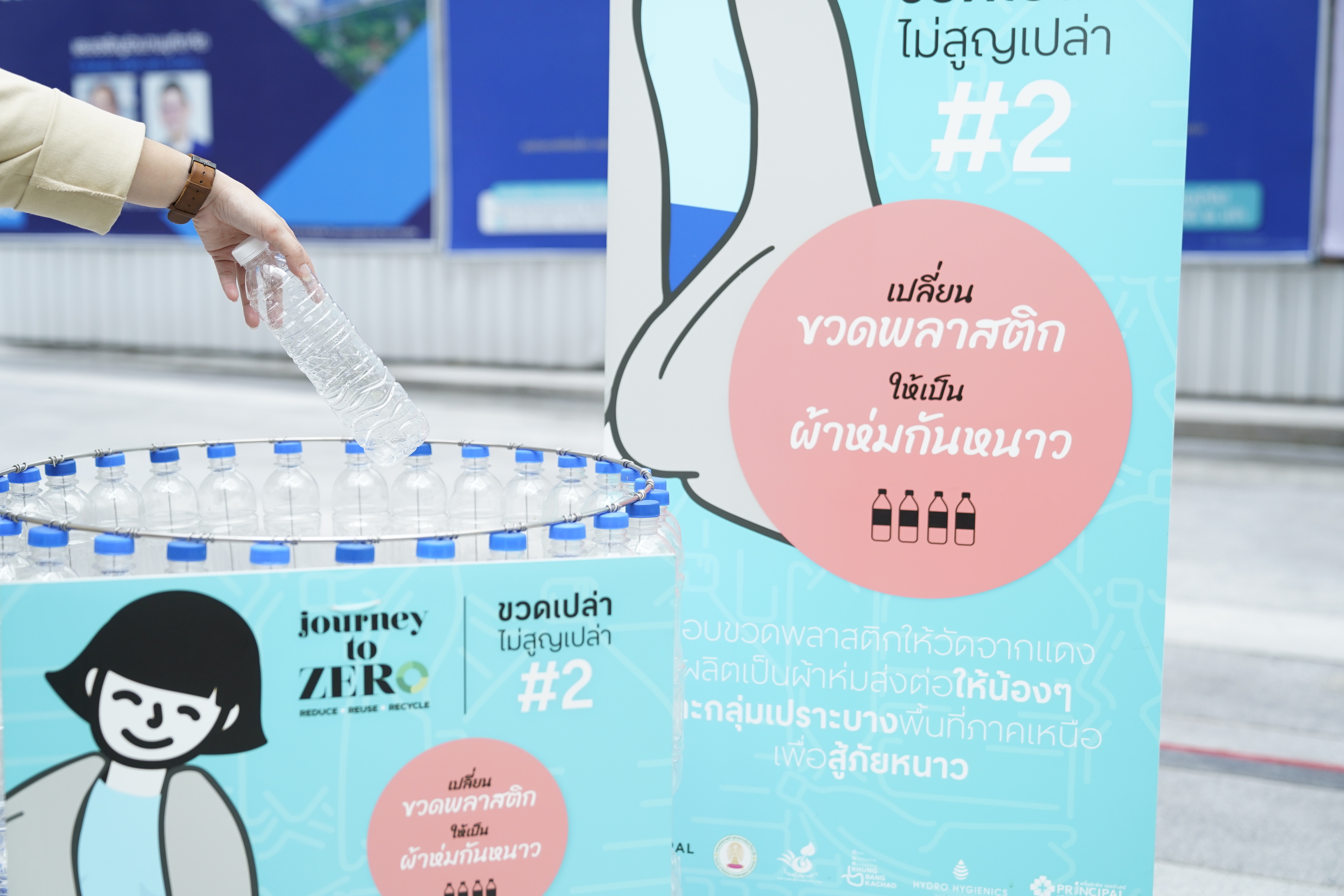 การจัดการขยะพลาสติกภายใต้ โครงการ ‘ขวดเปล่า ไม่สูญเปล่า’ ที่รีไซเคิลขวด PET กลับมาใช้ใหม่ หรือแปรรูปเป็นผลิตภัณฑ์ที่เกิดประโยชน์