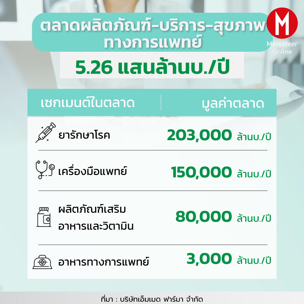 ยารักษาโรค แชร์กว่า 66% ตลาดผลิตภัณฑ์-บริการ-สุขภาพทางการแพทย์ 5.26 แสนล้านบ./ปี |
