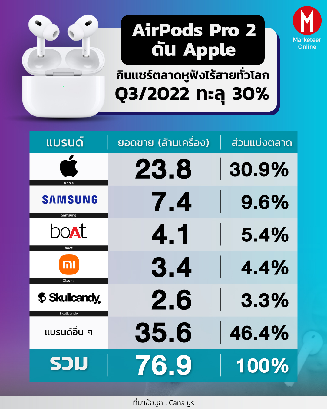 ดัน Apple กินแชร์ตลาดหูฟังไร้สายทั่วโลก Q3/2022 ทะลุ 30% |