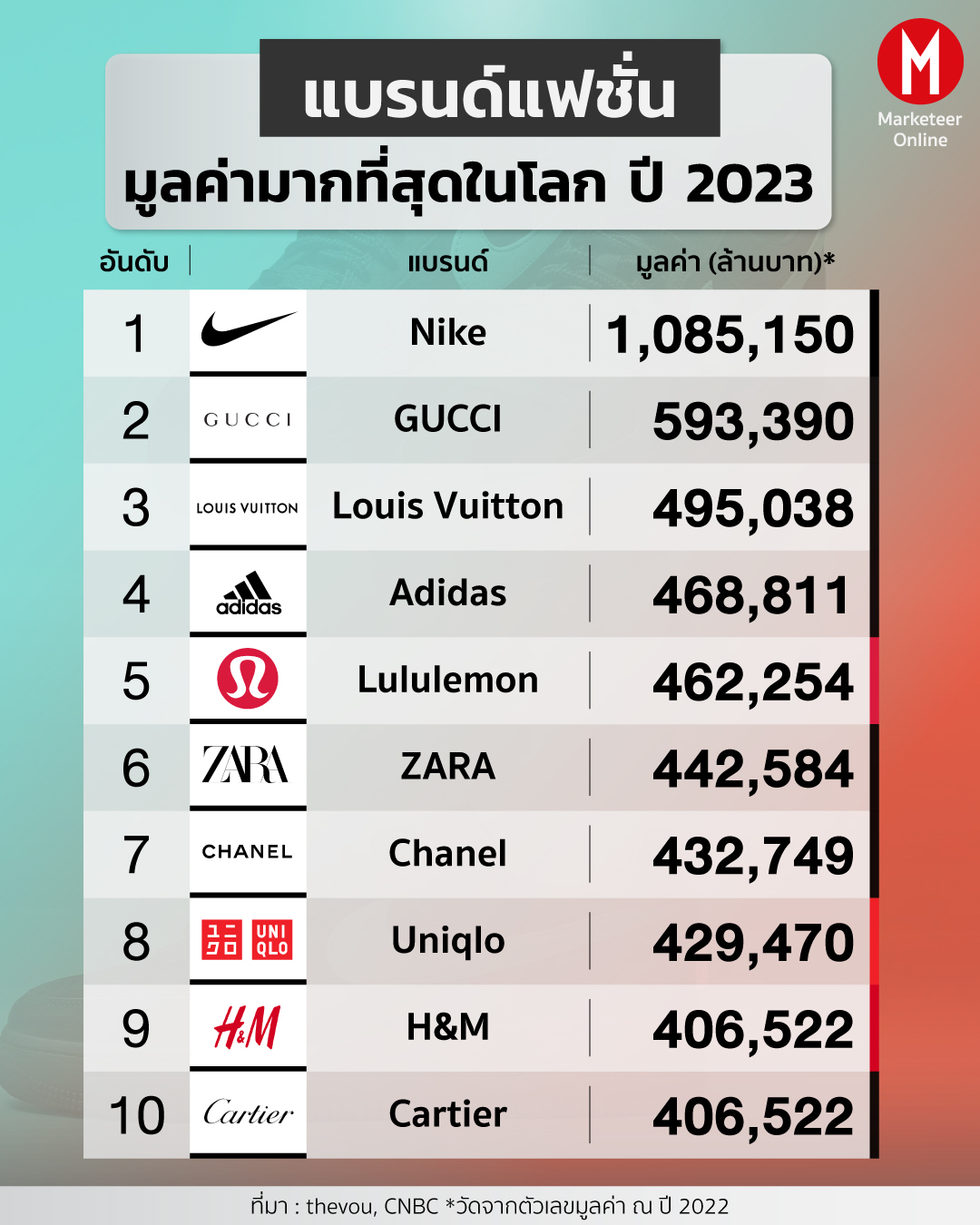 แบรนด์แฟชั่นมูลค่ามากที่สุดในโลก ปี 2023