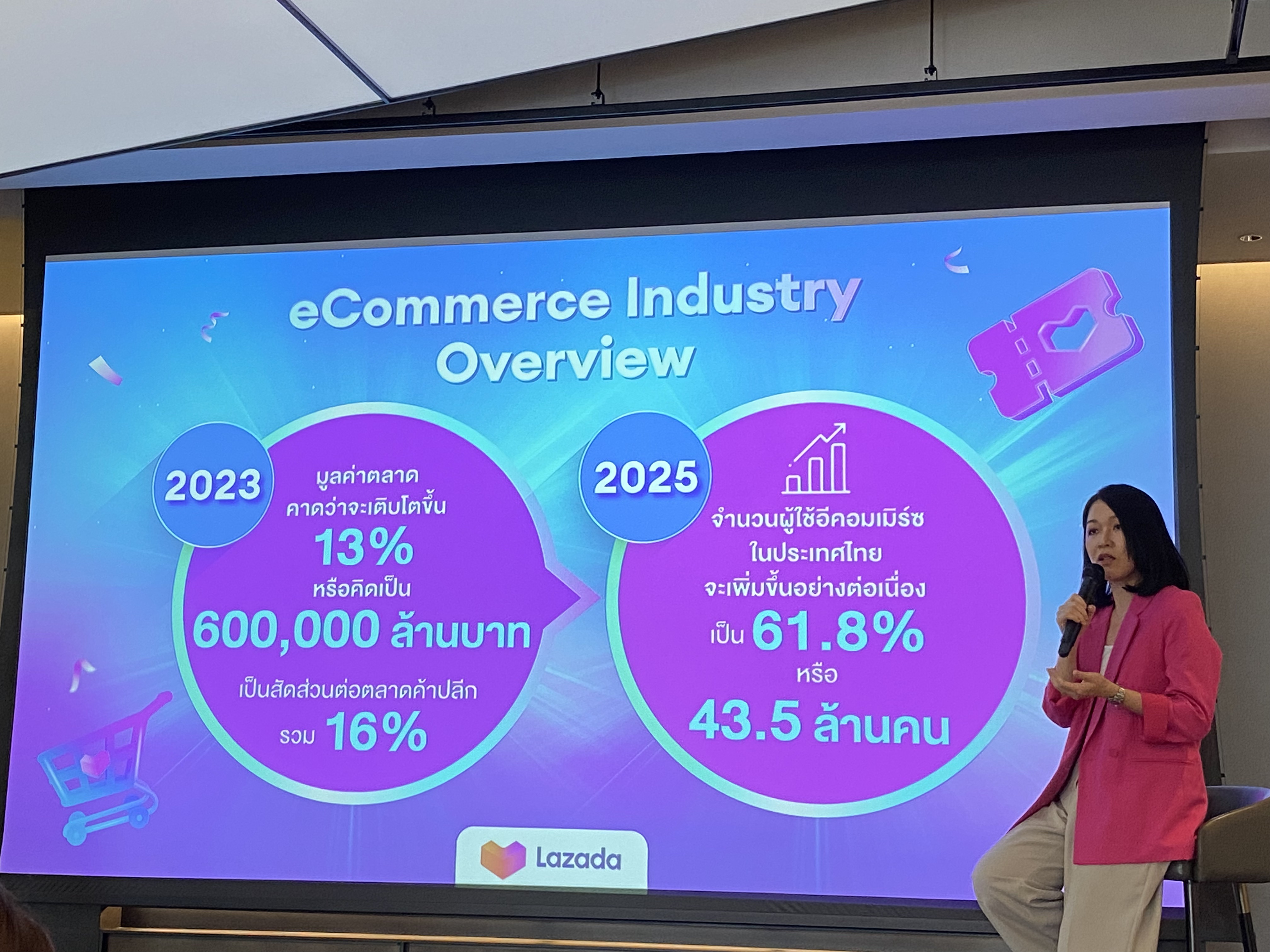 ธนิดา ซุยวัฒนา ประธานเจ้าหน้าที่บริหารฝ่ายธุรกิจ ลาซาด้า ประเทศไทย หรือ Lazada กล่าวถึงภาพรวมอีคอมเมิร์ซ (E-Commerce) ในไทย ปี 2566 จะยังคงมีการเติบโตต่อเนื่อง สอดคล้องกับข้อมูลจากรายงาน Transforming Southeast Asia–From Discovery to Delivery ที่ลาซาด้าจัดทำขึ้น เพื่อวิเคราะห์พฤติกรรมนักช้อปในปี 2565 สำรวจผู้บริโภคใน SEA จำนวน 38,138 คน ครอบคลุมทุกเพศ-อายุ-ระดับรายได้ แบ่งเป็นผู้ตอบแบบสอบถามเฉพาะผู้บริโภคไทย 2,923 คน