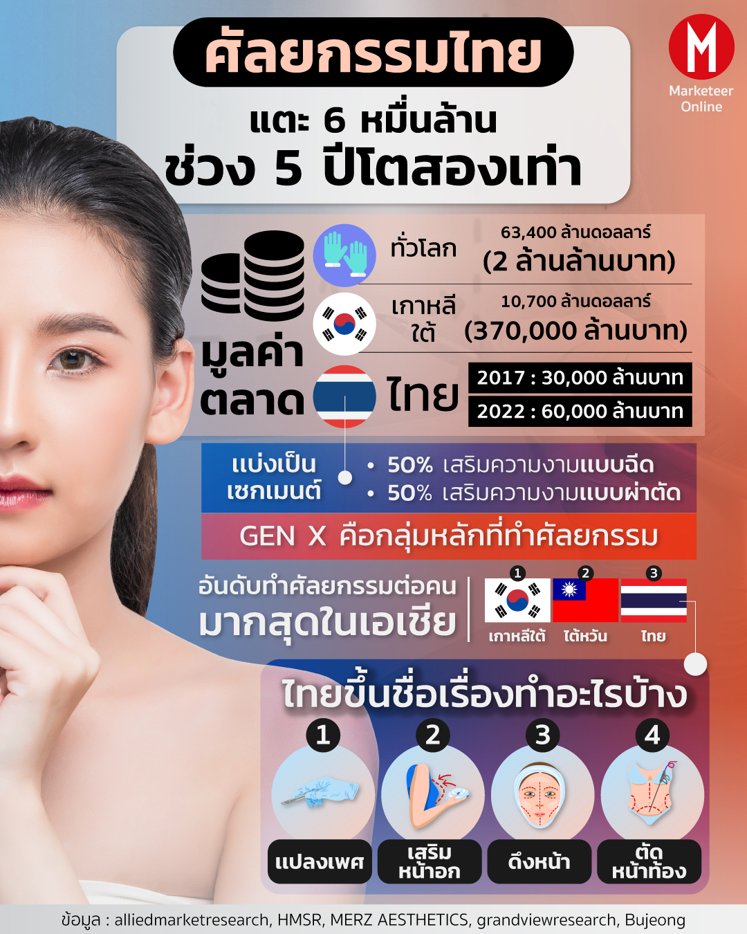 ข้อมูล: alliedmarketresearch, HMSR, MERZ AESTHETICS, grandviewresearch, Bujeong