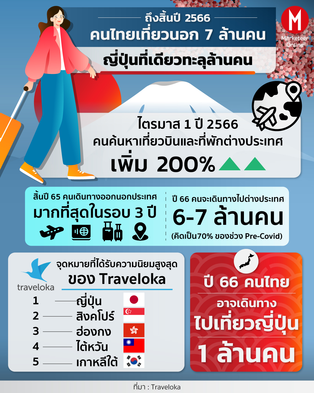 ถึงสิ้นปี 2566 คนไทยเที่ยวนอก 7 ล้านคน ญี่ปุ่นที่เดียวทะลุล้านคน