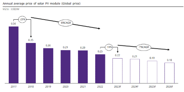 ที่มา: การวิเคราะห์โดย SCB EIC จากข้อมูลของ BNFF, PV Magazine และ IEA