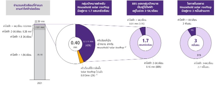 รูปที่ 9: กลุ่มเป้าหมายสำหรับ Solar rooftop มีอยู่ 1.7 แสนครัวเรือน มูลค่าราว 3 หมื่นล้านบาท
