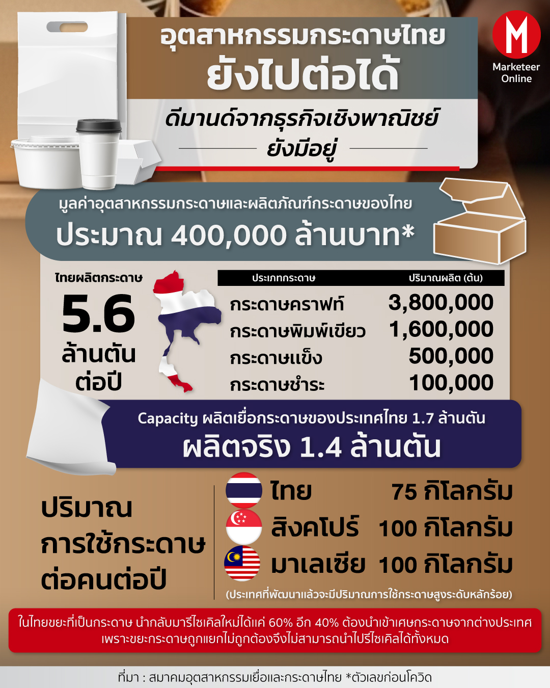 ข้อมูล: สมาคมอุตสาหกรรมเยื่อเเละกระดาษไทย
