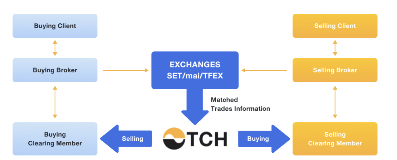และจากภาพด้านบนจะเห็นบทบาทของ สำนักหักบัญชี หรือ TCH ที่เป็นตัวกลางระหว่างระหว่าง Brokerทั้งหลาย ในการชำระเงินและส่งมอบหุ้น