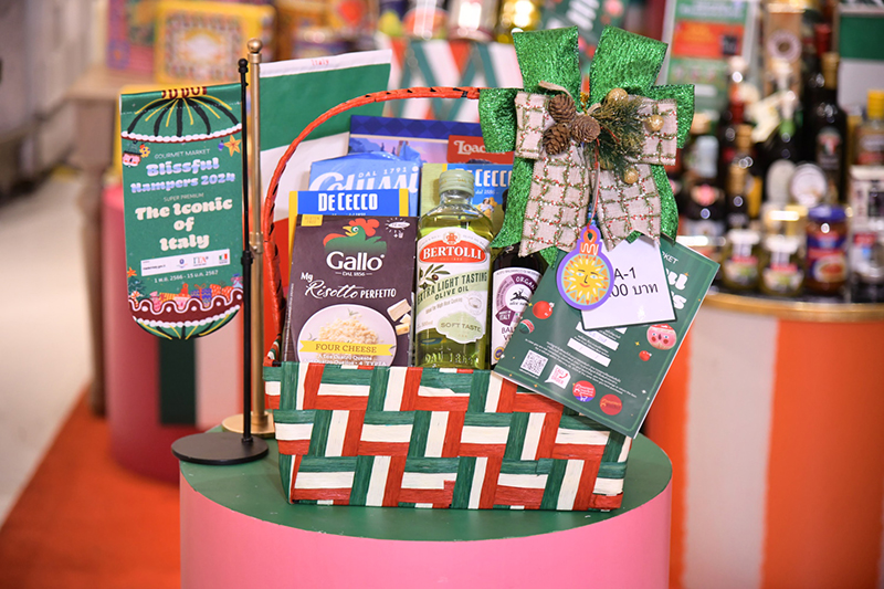 “กูร์เมต์ มาร์เก็ต” ร่วมส่งต่อความสุขอย่างไม่มีที่สิ้นสุด ผ่านกระเช้าของขวัญปีใหม่ Blissful Hampers 2024 ภายใต้คอนเซ็ปต์ Happiness Booster บูสต์ความสุขจนล้นใจ ด้วยคำอวยพร และหลากหลายของดีที่ส่งต่อให้แก่คนที่คุณรัก พร้อมมอบความประทับใจแก่ผู้รับด้วยคำอวยพรสุดเซอร์ไพรส์ผ่าน AR Gumbo Family ที่สามารถสแกนได้จาก Gift Tag ที่ติดอยู่ที่กระเช้า เพื่อตอกย้ำการเป็น WORLD CLASS GOURMET DESTINATION กูร์เมต์ มาร์เก็ต ร่วมกับ สำนักงานพาณิชย์อิตาเลียน และ สถานทูตอิตาลีประจำประเทศไทย ร่วมส่งความสุขต้อนรับเทศกาลปีใหม่ ด้วยกระเช้าของขวัญ Super Premium The Iconic of Italy ภายในกระเช้าบรรจุสินค้าและวัตถุดิบพรีเมียมจากต้นกำเนิดไปจนถึงแหล่งผลิตที่ดีที่สุดในแคว้นต่างๆของประเทศอิตาลี การันตีคุณภาพและความอร่อยด้วยรางวัลระดับโลกมากมายส่งตรงจากอิตาลีแท้ 100% อาทิ