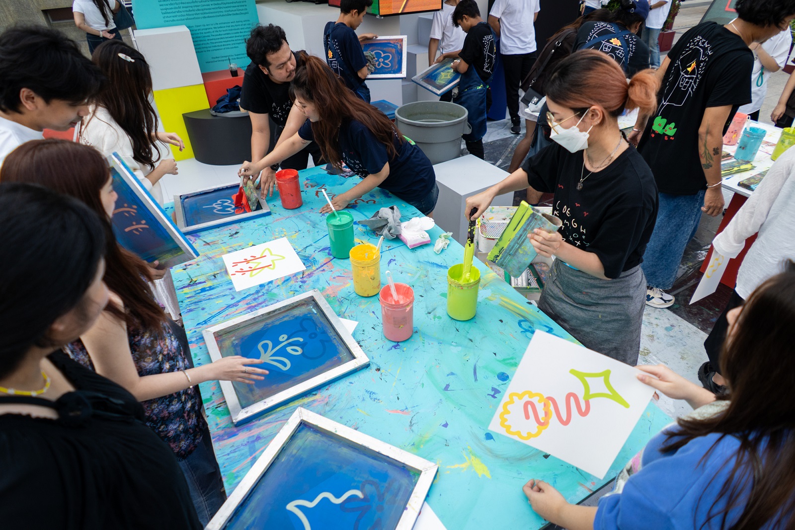 กิจกรรม Live Paint “Here, There: Art Is Everywhere” โดยศิลปิน BIGDEL และ MRKREME สองศิลปินสตรีทอาร์ตชื่อดังของเมืองไทยจาก Bride Art Agency ที่มาวาดลวดลายกราฟิตี้อันเป็นเอกลักษณ์บนตัวบล็อกของพาวิลเลียนให้ชมกันแบบสดๆ ซึ่งจะนำมาจัดแสดงเป็นส่วนหนึ่งของ วัน แบงค็อก