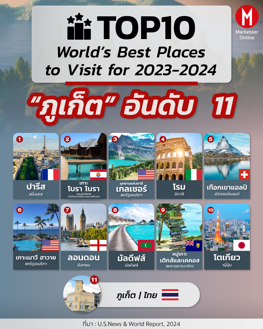 รายงานออกมาเป็น สถานที่ท่องเที่ยวที่ดีที่สุดในโลก 2023-2024 (World’s Best Places to Visit for 2023-2024) รวมปรากฏในรายงานทั้งหมด 30 อันดับ