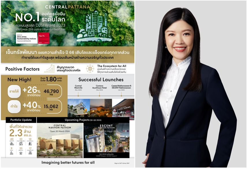 ขณะเดียวกัน ในไตรมาส 4 ปี 2566 บริษัทฯ เดินหน้าแผนขยายธุรกิจสำเร็จในรูปแบบ ‘Retail-Led Mixed-Use Development’ ดังนี้ ธุรกิจศูนย์การค้า (Shopping Centre) เปิดศูนย์การค้า ‘เซ็นทรัล เวสต์วิลล์’ศูนย์กลางแห่งใหม่ของกรุงเทพฝั่งตะวันตกในเดือนพฤศจิกายน ซึ่งจัดเป็นโครงการ semi-outdoor ที่คำนึงถึงคุณภาพการใช้ชีวิตใกล้ชิดธรรมชาติของผู้คน สัตว์เลี้ยง และดูแลสิ่งแวดล้อมซึ่งได้รับผลตอบรับดีตั้งแต่วันเปิดโครงการ ธุรกิจโครงการที่อยู่อาศัย (Residence) เปิดตัวโครงการคอนโดมิเนียม ‘เอสเซ็นท์ บุรีรัมย์’ และโครงการบ้านเดี่ยวอีก 2 แห่ง คือ ‘บ้านนิรดา พระราม 2’ ในเดือนตุลาคม และ ‘บ้านนิรดา อุทยาน-อักษะ’ ในเดือนธันวาคม ธุรกิจโรงแรม (Hotel) เปิดตัวโครงการ ‘โรงแรมเซ็นทารา อยุธยา’ เพื่อเติมเต็มโครงกานรมิกซ์ยูสเซ็นทรัล อยุธยา สำหรับปี 2567 บริษัทฯ พร้อมสร้างความเติบโตให้กับทุกภาคส่วนใน The Ecosystem for All เตรียมเปิดโครงการใหม่ต่อเนื่อง ล่าสุดได้เปิดศูนย์การค้า ‘เซ็นทรัล นครสวรรค์’ ในวันที่ 31 มกราคม 2567 ที่ผ่านมา และเตรียมเปิด ‘เซ็นทรัล นครปฐม’ ปฐมบทใหม่แห่งการใช้ชีวิตในวันที่ 30 มีนาคม 2567