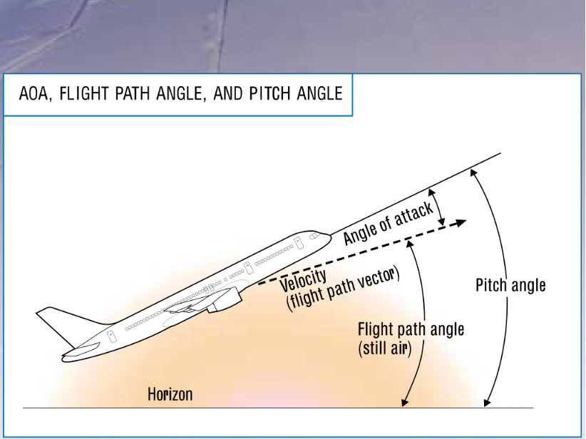 ภาพอธิบายมุมต่าง ๆ ที่เกี่ยวข้องกับหลักอากาศพลศาสตร์ของเครื่องบิน