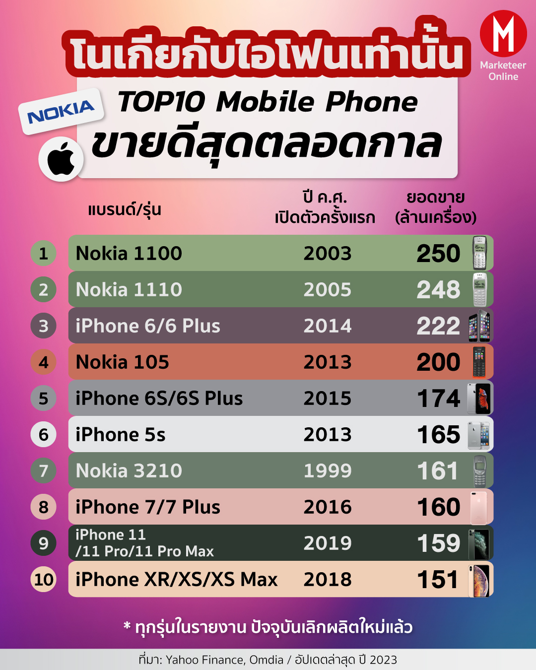 โนเกีย-ไอโฟน ผู้บุกเบิกยุคฟีเจอร์โฟน-สมาร์ตโฟน คว้า 10 Mobile phone ขายดีสุดตลอดกาล เพียง 2 แบรนด์