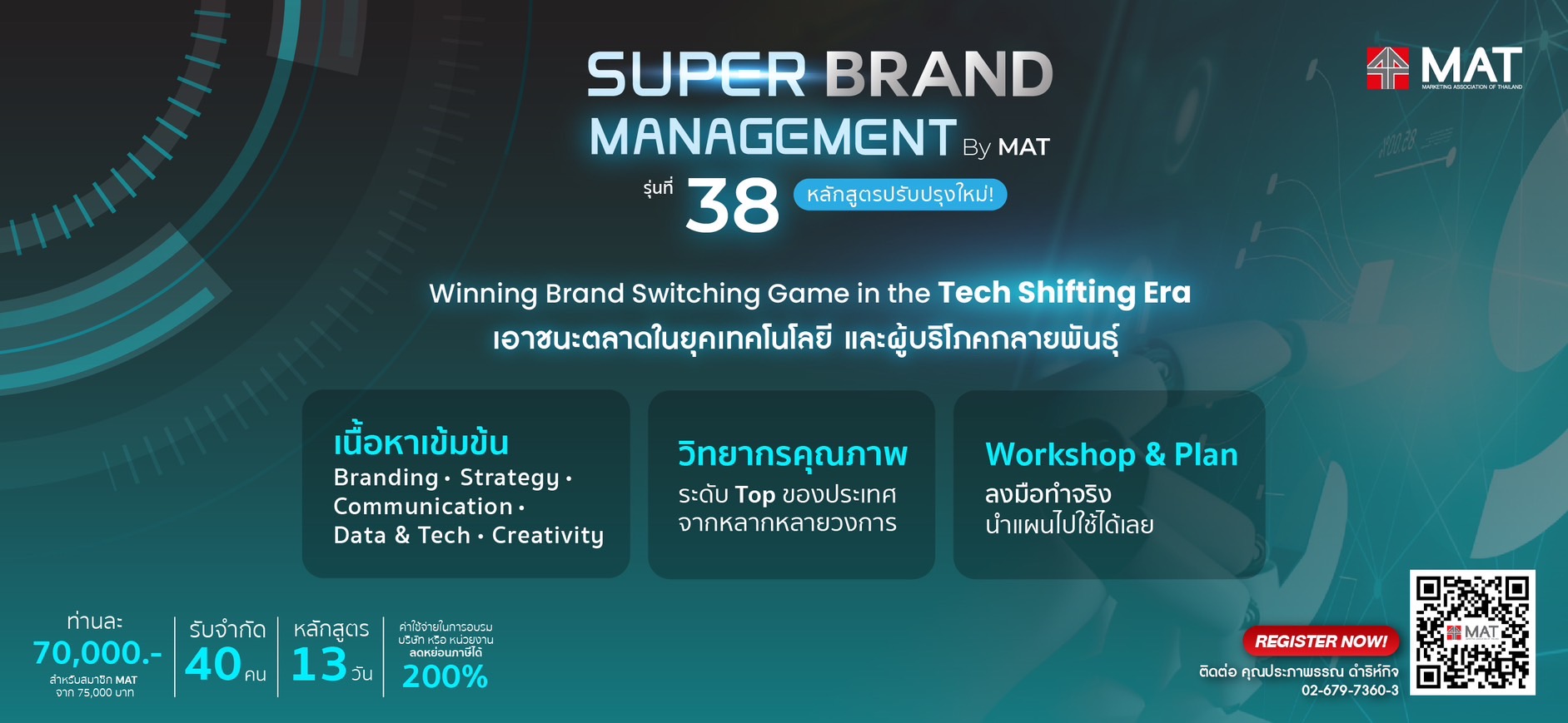 สมาคมการตลาดแห่งประเทศไทยจึงได้จัดหลักสูตรสุดเข้มข้น “Super Brand Management” ให้นักบริหารแบรนด์ตามผู้บริโภคและเทคโนโลยีให้ทัน อัดแน่นด้วย 6 Modules 21 Sessions 21 Speakers 5 Commentators โดยผู้บริหารระดับสูง ผู้เชี่ยวชาญการบริหารแบรนด์ในวงการตลาด เอเจนซีชั้นนำของไทย เช่น