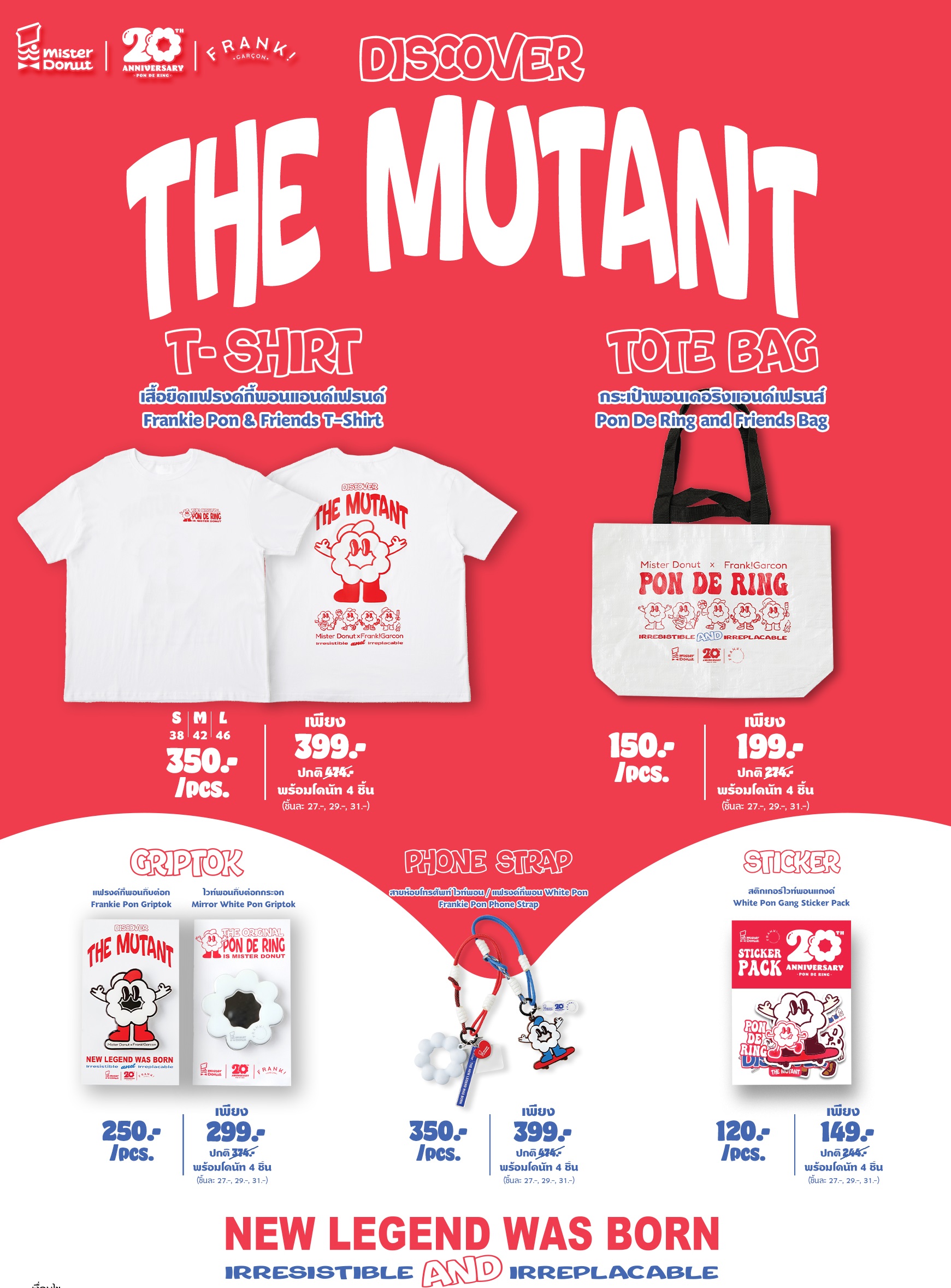 มิสเตอร์ โดนัท ผู้นำตลาดโดนัทเมืองไทย บริหารงานโดย บริษัท เซ็นทรัล เรสตอรองส์ กรุ๊ป จำกัด (ซีอาร์จี) เดินหน้าต่อยอดแคมเปญ ฉลองครบรอบ 20 ปี พอน เดอ ริง สร้างปรากฎการณ์พิเศษ “MISTER DONUT x FRANK GARCON” เจาะลูกค้ากลุ่ม Young Gen ด้วยการคอลแลปกับ FRANK GARCON มัลติแบรนด์สโตร์สุดฮิต ร่วมออกแบบ Everyday Lifestyle Items ภายใต้คอนเซปต์ “Discover The Mutant” การกลายร่างสายพันธุ์ใหม่ของไวท์พอนเดอริง