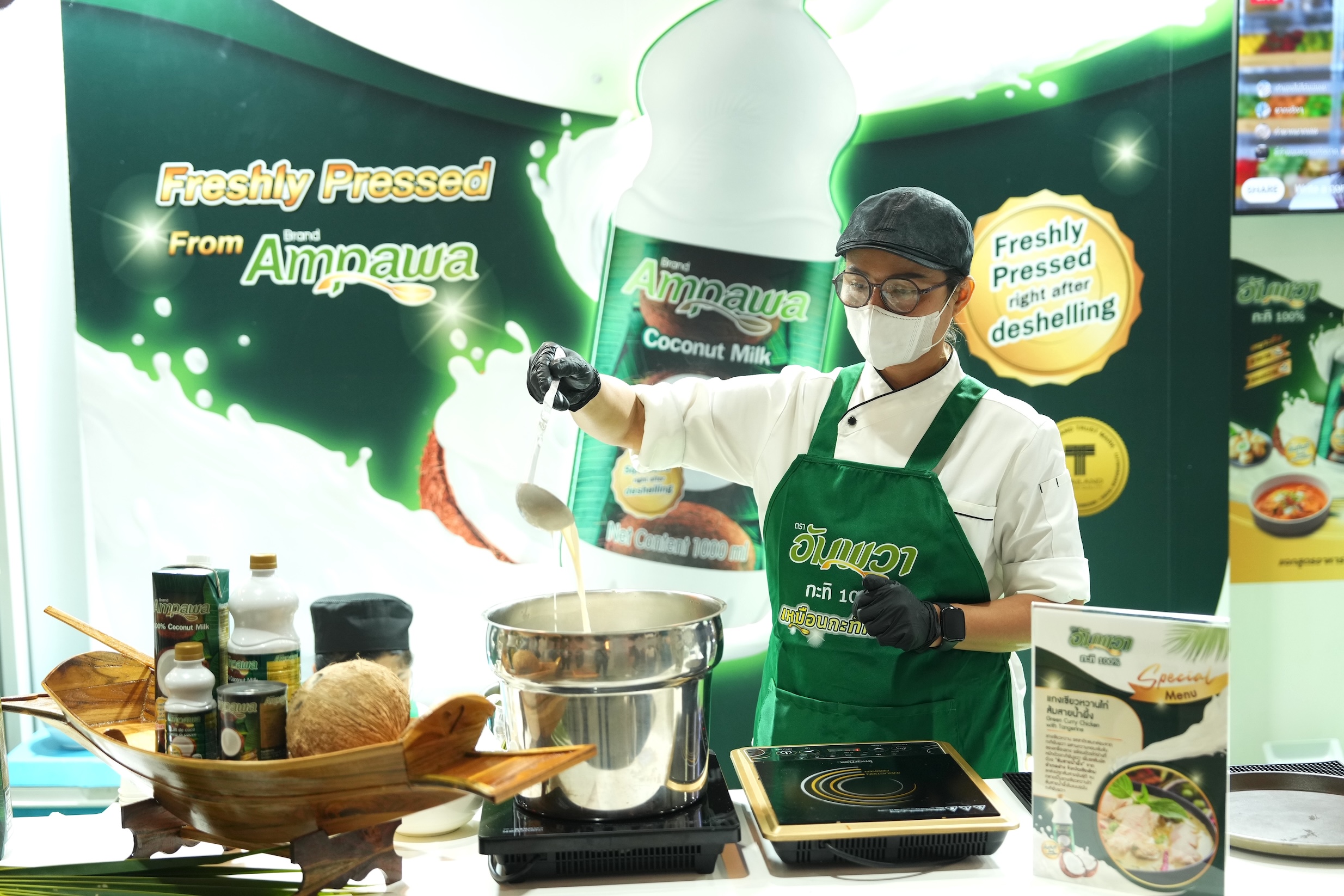 “อัมพวา” กะทิแท้ 100% คุณภาพชั้นเยี่ยมที่คัดสรรวัตถุดิบมะพร้าวพันธุ์ดี คั้นทันทีตั้งแต่กะเทาะเปลือก ผ่านกรรมวิธีการผลิตที่ทันสมัยและรวดเร็ว จึงขาวข้น หอมมันเหมือนกะทิคั้นสด เพราะใช้เทคโนโลยีชั้นสูงในการผลิต บรรจุเย็นภายใต้สภาวะปลอดเชื้อ (Cold Aseptic Filling) เพื่อเก็บรักษาคุณภาพความสดของกะทิเอาไว้ พร้อมสำหรับการจุดประกายสร้างสรรค์ความอร่อยให้หลากหลายไม่รู้จบ ภายในงานนอกจากโซนเชฟส์ เทเบิ้ล (Chef’s Table) ที่จะมอบประสบการณ์และรสชาติอันยอดเยี่ยมของอาหารจากกะทิอัมพวาแล้ว ยังมีอาหารเมนูพิเศษที่บูธให้ได้ชิมอีกมากมาย มอบประสบการณ์ความอร่อยใหม่เหนือระดับ อาทิ “ไอศกรีมกะทิอัมพวารูปกะลา 3D” โดดเด่นด้วยรสชาติความหอมหวานกลมกล่อมจากกะทิแท้ 100% มาในรูปแบบอันเป็นเอกลักษณ์ สร้าง Soft Power ให้กับกะทิไทยอย่างแตกต่างไม่เหมือนใคร “แกงเขียวหวานไก่ส้มสายน้ำผึ้ง” รสชาติกลมกล่อมจากกะทิอัมพวา ผสานความหอมเข้มข้นของเครื่องแกง พร้อมด้วยไก่ย่างที่หมักด้วยกะทิอัมพวา เพิ่มรสสัมผัสด้วย ส้มสายน้ำผึ้ง จาก อ.ฝาง จังหวัดเชียงใหม่ “บัวลอยกะทิอัมพวา” ที่ทั้งนวดแป้งกับกะทิอัมพวา ต้มเม็ดบัวลอยด้วยกะทิอัมพวา ทำให้ได้รสสัมผัสที่นุ่มหนึบละมุน กลายเป็นขนมไทยที่หอมหวานน้ำกะทิ มีทั้งบัวลอยอัญชัน และบัวลอยจาก ข้าวเหนียวลืมผัว ข้าวพันธุ์พื้นเมืองจากอำเภอพบพระ จังหวัดตาก เป็นแป้งบัวลอยที่ให้สัมผัสเหนียวนุ่มอย่างแตกต่าง เป็นต้น