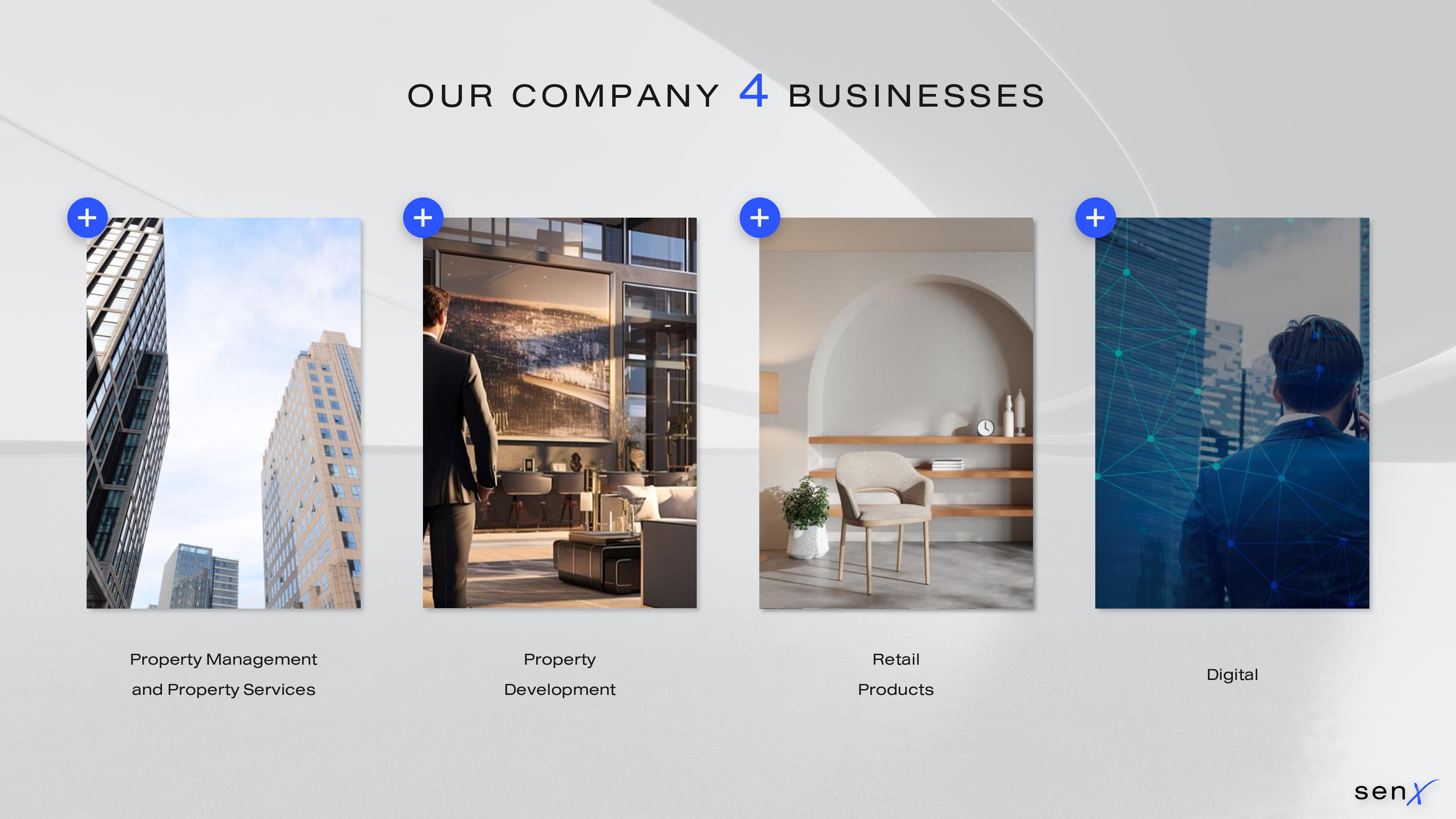 - ธุรกิจ Sen X Property and Facilities Management ให้บริการด้านการบริหารจัดการนิติบุคคลที่อยู่อาศัย แบ่งออกเป็น 2 ส่วน