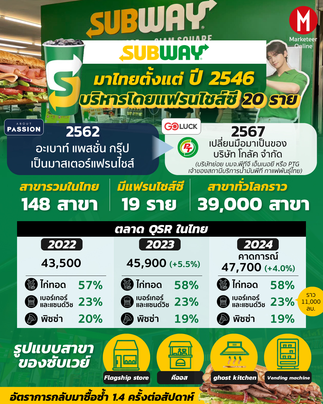 หลังการได้รับสิทธิ์มาสเตอร์แฟรนไชส์ซับเวย์ในประเทศไทยเพียงผู้เดียวเมื่อเดือนเมษายน บริษัทเผยแผนเร่งเครื่องขึ้น Top 3 ด้วยกลยุทธ์