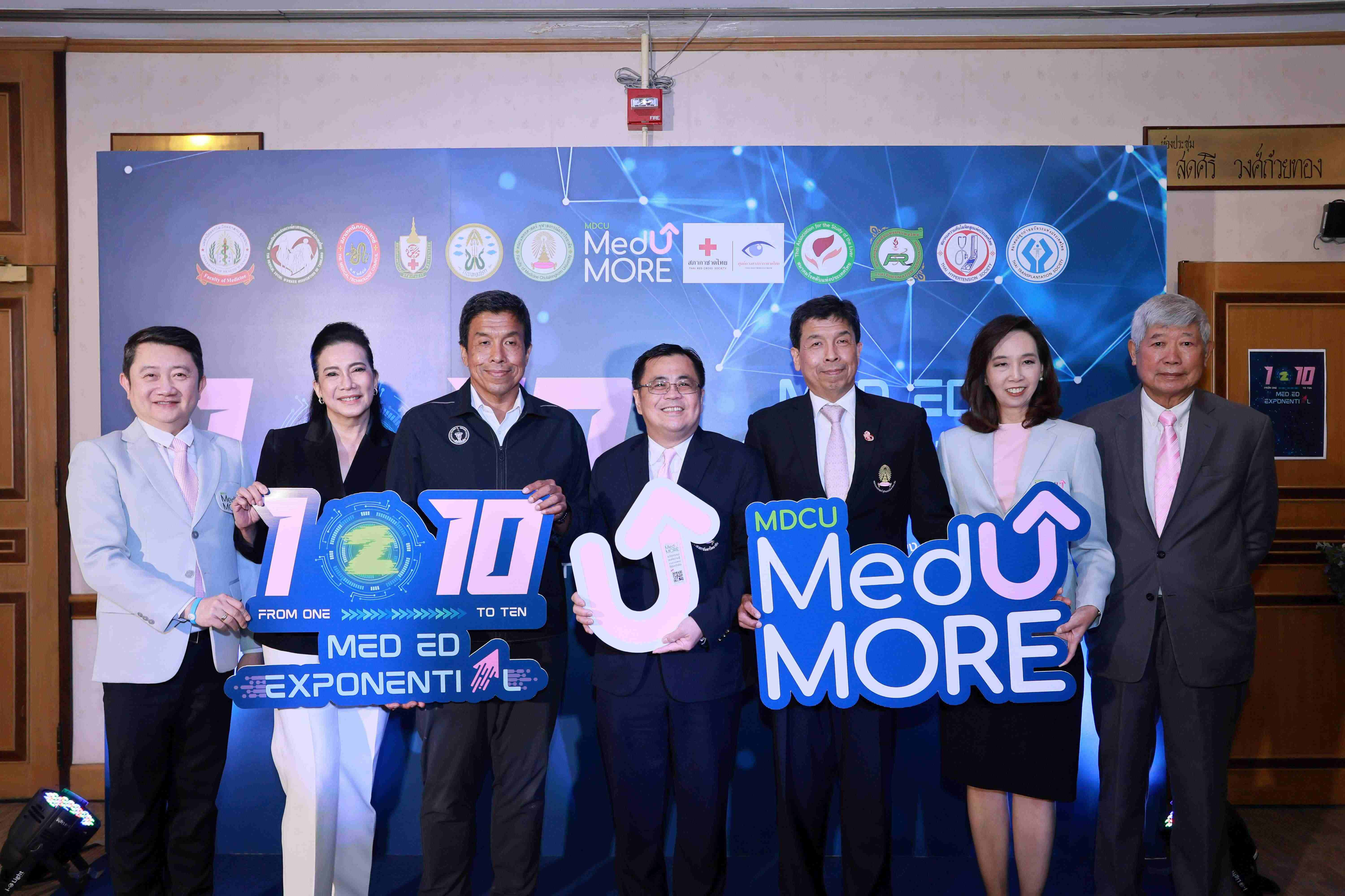 คณะแพทย์ฯ พัฒนา Online Learning Platform ภายใต้ชื่อ “MedUMORE” โดยในการจัดงานครั้งนี้ นำเสนอภายใต้แนวคิด 1-2-10 (1 to 10) Med Ed Exponential ซึ่ง 1 หมายถึงวิสัยทัศน์ของ ในการเป็นผู้นำด้านคลังความรู้ออนไลน์ด้าน สุขภาพการแพทย์และสาธารณสุขที่ใหญ่ที่สุดในประเทศไทย 2 หมายถึงการดำเนินงาน มาเป็นปีที่ 2 และมีการเข้าชมกว่า 2 ล้านครั้ง สามารถรองรับการใช้งานทุกรูปแบบ ตอบโจทย์วิถีชีวิตคนรุ่นใหม่และการเรียนรู้ที่ไม่จำกัดเพียงแค่ในตำรา โดยรวบรวมเนื้อหา จากผู้เชี่ยวชาญเฉพาะทาง ทั้งในระดับประเทศและระดับโลก ตลอดจนการประชุมวิชาการ และ 10 หมายถึงการเติบโตอย่างก้าวกระโดดของการศึกษาทางด้านการแพทย์ หรือแบบ Exponential โดยการมีภาคีเครือข่ายเข้าร่วมให้ความรู้ทางการแพทย์และประสบการณ์ ความเชี่ยวชาญของบุคลากรจาก 10 องค์กรแพทย์ ส่งเสริมให้ MedUMORE เป็น นวัตกรรมและเทคโนโลยีทางการแพทย์ สู่การเผยแพร่องค์ความรู้ทุกมิติบน Digital Platform ที่มีมาตรฐานเชื่อมต่อผู้ใช้งานทั่วโลก ให้สามารถเข้าถึงได้สะดวกรวดเร็ว ต่อเนื่องและปลอดภัย