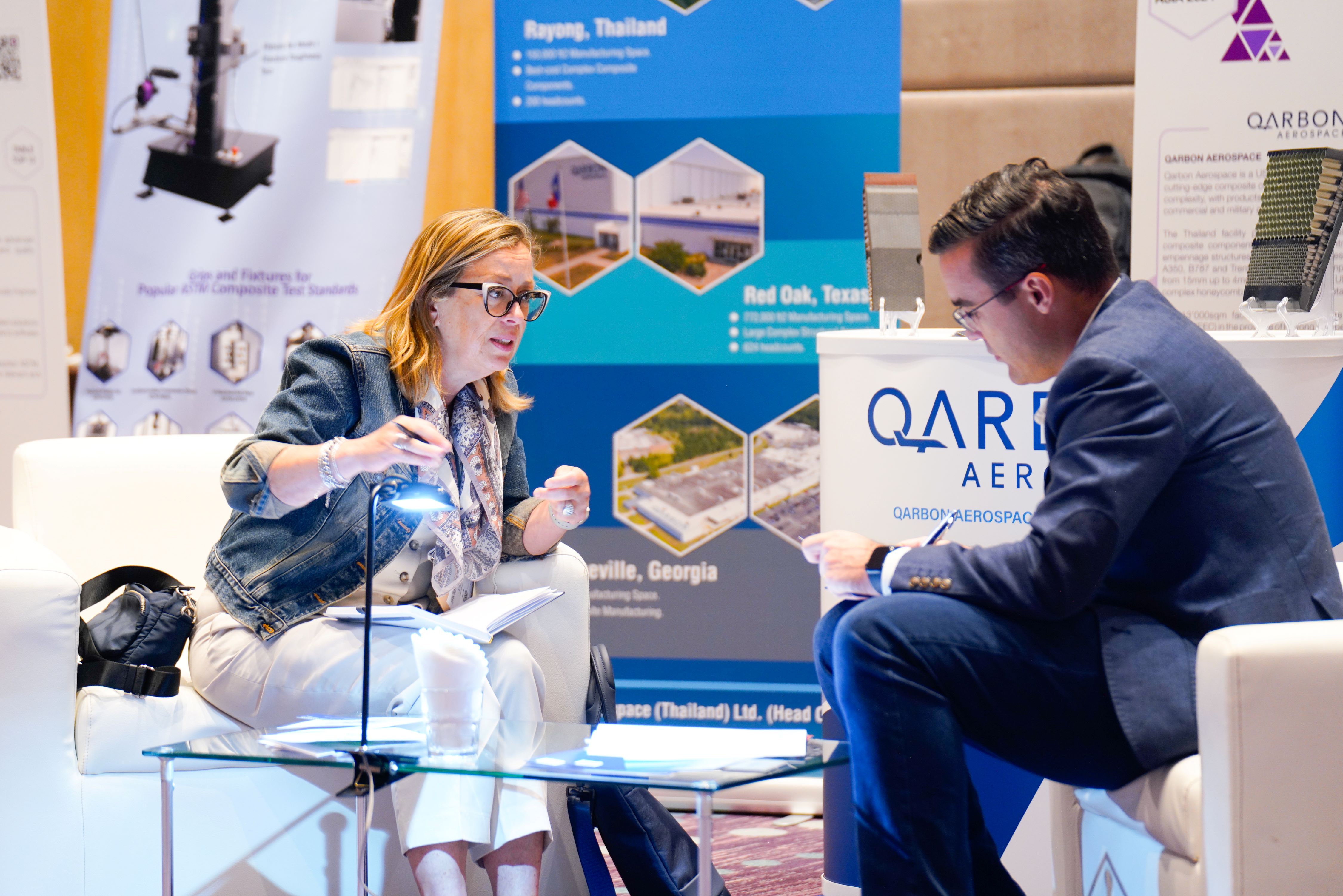 ในส่วนของการนัดพบทางธุรกิจ หรือ Business Meetings มีบริษัทยักษ์ใหญ่เข้าร่วมมากมาย อาทิ Qarbon Aerospace ผู้ผลิตชั้นนำด้านส่วนประกอบคอมโพสิทและการประกอบทุกระดับที่มีความซับซ้อน พร้อมด้วยผลิตภัณฑ์ที่ติดตั้งบนเครื่องบินพาณิชย์และการทหารที่ทันสมัยที่สุดในอุตสาหกรรมการบิน โดยมีสำนักงานใหญ่อยู่ในสหรัฐอเมริกา และมีโรงงานผลิตหลักอยู่ที่นิคมอุตสาหกรรมอมตะซิตี้ จ.ระยอง เพื่อจัดส่งให้กับกลุ่มลูกค้าทวีปยุโรปเป็นส่วนใหญ่, Asia Kangnam บริษัทของคนไทย ผลิตวัสดุหลัก คือ ไฟเบอร์กลาส และคาร์บอนไฟเบอร์ ซึ่ง 2 ส่วนนี้อยู่ในงานคอมโพสิททั้งหมด และกำลังพัฒนา ไฟเบอร์ธรรมชาติ (National Fiber) อยู่ ซึ่งใช้ของ HEM เป็นนวัตกรรมใหม่นำใยกัญชงเข้ามาสู่ในอุตสาหกรรมคอมโพสิท มีคุณสมบัติความแข็งแรงใกล้เคียงกับใยแก้ว