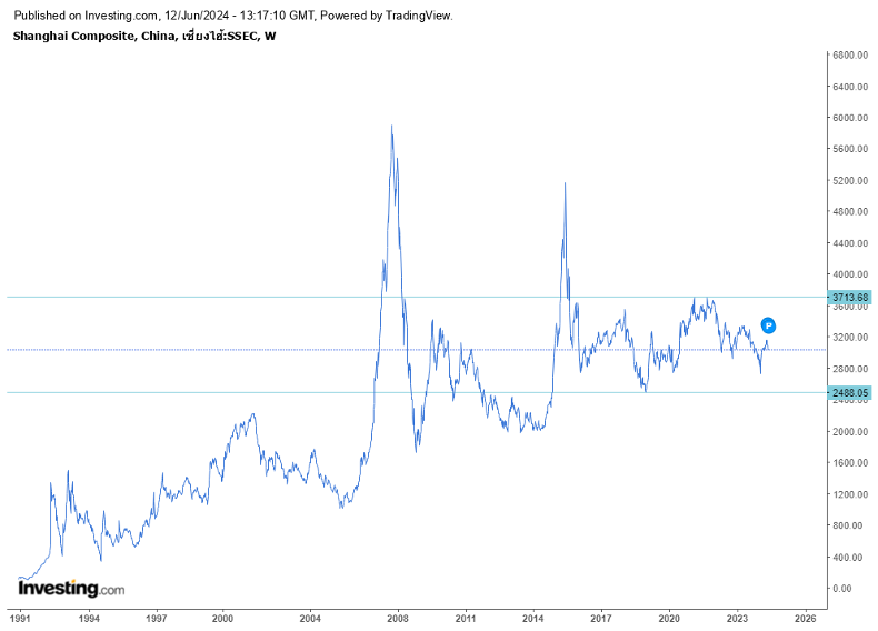 ตลาดหุ้นจีนเป็นตลาดหุ้นที่มีผลการดำเนินงานแย่ที่สุดในโลก โดยดัชนี Shanghai Shenzhen CSI 300 ลดลงประมาณ 20% นับตั้งแต่เดือนสิงหาคม ปี 2023 การตกต่ำของตลาดหุ้นนี้ส่วนหนึ่งมาจากความคาดหวังต่อการเติบโตของเศรษฐกิจจีนที่ไม่เป็นไปตามที่นักลงทุนคาดหวัง แต่หลังจากรัฐบาลจีนประกาศว่าจะกระตุ้นความเชื่อมั่นนักลงทุนและพยุงตลาดหุ้นโดยใช้มาตรการต่าง ๆ ที่ได้กล่าวถึงไปแล้วในหัวข้อที่แล้ว แล้วผลลัพธ์ในระยะสั้นดูเหมือนจะช่วยให้ตลาดหุ้นตื่นฟื้นตัวกลับมาได้ดีโดยดัชนีเซี่ยงไฮ้คอมโพสิตเพิ่มขึ้น 13% จากระดับต่ำสุดในรอบหลายปี ซึ่งช่วยคลายความกังวลของนักลงทุนรายย่อยและรัฐบาล