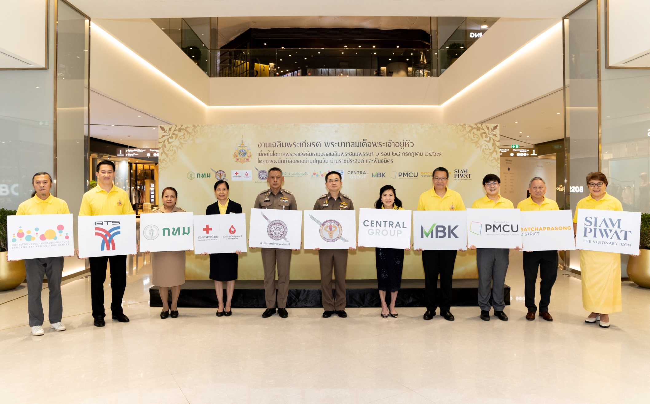 ในงานเปิดตัวโครงการฯ ได้รับเกียรติจากผู้บริหารระดับสูงขององค์กรต่างๆ ที่พร้อมใจสวมเสื้อสีเหลืองแสดงพลังแห่งความจงรักภักดีต่อพระบาทสมเด็จพระเจ้าอยู่หัว โดยมีผู้เข้าร่วมงาน ได้แก่กรุงเทพมหานคร คุณสุขวิชญาณ์ นสมทรง ผู้อำนวยการเขตปทุมวัน, โรงพยาบาลตำรวจ พล.ต.ท. ทวีศิลป์ เวชวิทารณ์ นายแพทย์ใหญ่ (สบ๘), สภากาชาดไทย คุณสิณีนาฏ อุทา ผู้ช่วยผู้อำนวยการด้านการบริการโลหิต ศูนย์บริการโลหิตแห่งชาติ สภากาชาดไทย, สำนักงานตำรวจแห่งชาติ พ.ต.อ. อาคม ชุมพรัตน์ ผู้กำกับการสถานีตำรวจนครบาลปทุมวัน, หอศิลปวัฒนธรรมแห่งกรุงเทพมหานคร คุณชาญยุทธ มนูญวิริยะกุล ผู้ช่วยผู้อำนวยการหอศิลปวัฒนธรรมแห่งกรุงเทพมหานคร, บริษัท ระบบขนส่งมวลชนกรุงเทพ จำกัด (มหาชน) (BTSC) คุณสุมิตร ศรีสันติธรรม ผู้อำนวยการใหญ่สายปฏิบัติการ, กลุ่มเซ็นทรัลและบริษัทในเครือ คุณสุพัตรา จิราธิวัฒน์ รองกรรมการผู้จัดการใหญ่ ฝ่ายองค์กรสัมพันธ์และภาพลักษณ์ และคุณสมกมล จิราธิวัฒน์ ผู้อำนวยการอาวุโส, บริษัท เอ็ม บี เค จำกัด (มหาชน) คุณวิจักษณ์ ประดิษฐวณิช ประธานเจ้าหน้าที่บริหารและกรรมการผู้อำนวยการ และคุณสมพล ตรีภพนารถ ประธานเจ้าหน้าที่บริหารธุรกิจศูนย์การค้า, สำนักงานจัดการทรัพย์สิน จุฬาลงกรณ์มหาวิทยาลัย (PMCU) อาจารย์ ดร.จรัสพัฒน์ พฤกษารัตนวุฒิ ผู้รักษาการผู้ช่วยอธิการบดี ด้านการจัดการทรัพย์สินจุฬาลงกรณ์มหาวิทยาลัย, สมาคมผู้ประกอบวิสาหกิจในย่านราชประสงค์ (RSTA) คุณชาย ศรีวิกรม์ นายกสมาคม และบริษัท สยามพิวรรธน์ จำกัด คุณนราทิพย์ รัตตประดิษฐ์ ประธานบริหารสายงานปฏิบัติการ และคุณสรัลธร อัศเวศน์ รองกรรมการผู้จัดการใหญ่ ผู้บริหารสายงานบริหารธุรกิจศูนย์การค้า ร่วมผนึกกำลังสำคัญในครั้งนี้เพื่อเฉลิมพระเกียรติและแสดงความจงรักภักดีโดยพร้อมเพรียงกัน