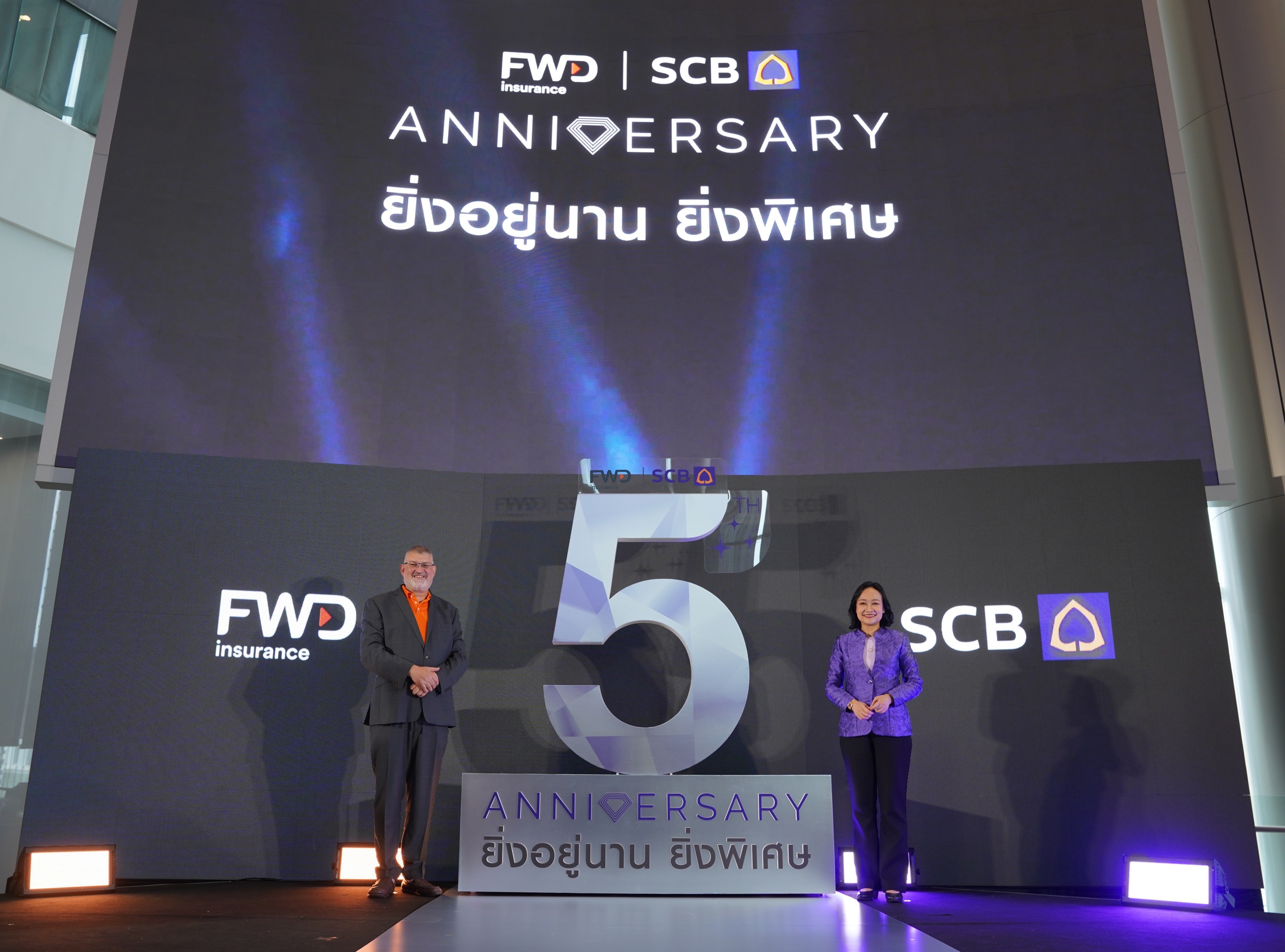ธนาคารไทยพาณิชย์ และเอฟดับบลิวดี ประกันชีวิต ฉลองความสำเร็จ 5 ปี ในการเป็นพันธมิตรทางธุรกิจ ที่ร่วมมอบทางเลือกผลิตภัณฑ์ความคุ้มครองชีวิตและสุขภาพ ด้วยช่องทางที่เชื่อมถึงกันอย่างไร้รอยต่อ โดยมอบความคุ้มครองให้ลูกค้าผู้ถือกรมธรรม์ เดินหน้าสานต่อความร่วมมือเพื่ออนาคตที่มั่นคงทางสุขภาพการเงินของคนไทย จุดพลุ “ประกันยิ่งอยู่นาน ยิ่งพิเศษ” มอบทางเลือกประกันชีวิตสะสมทรัพย์ระยะยาว ให้ลูกค้าเลือกระยะเวลาชำระเบี้ย 7 ปี 8 ปี หรือ 9 ปี พร้อมรับเงินคืนทุกปี สมัครง่ายไม่ต้องตรวจสุขภาพ ไม่ต้องตอบคำถามสุขภาพ พิเศษกว่าที่เคยด้วย โปรโมชัน 5 ต่อ พร้อมทั้งดึง “ตู่ ภพธร สุนทรญาณกิจ” ศิลปิน–นักแต่งเพลงฟีล อบอุ่น นั่งแท่นพรีเซนเตอร์คนใหม่ ร่วมสื่อสารและตอกย้ำความตั้งใจของสององค์กรที่เดินหน้าสนับสนุนคนไทยวางแผนชีวิตระยะยาวด้วยประกันชีวิตสะสมทรัพย์ระยะยาว