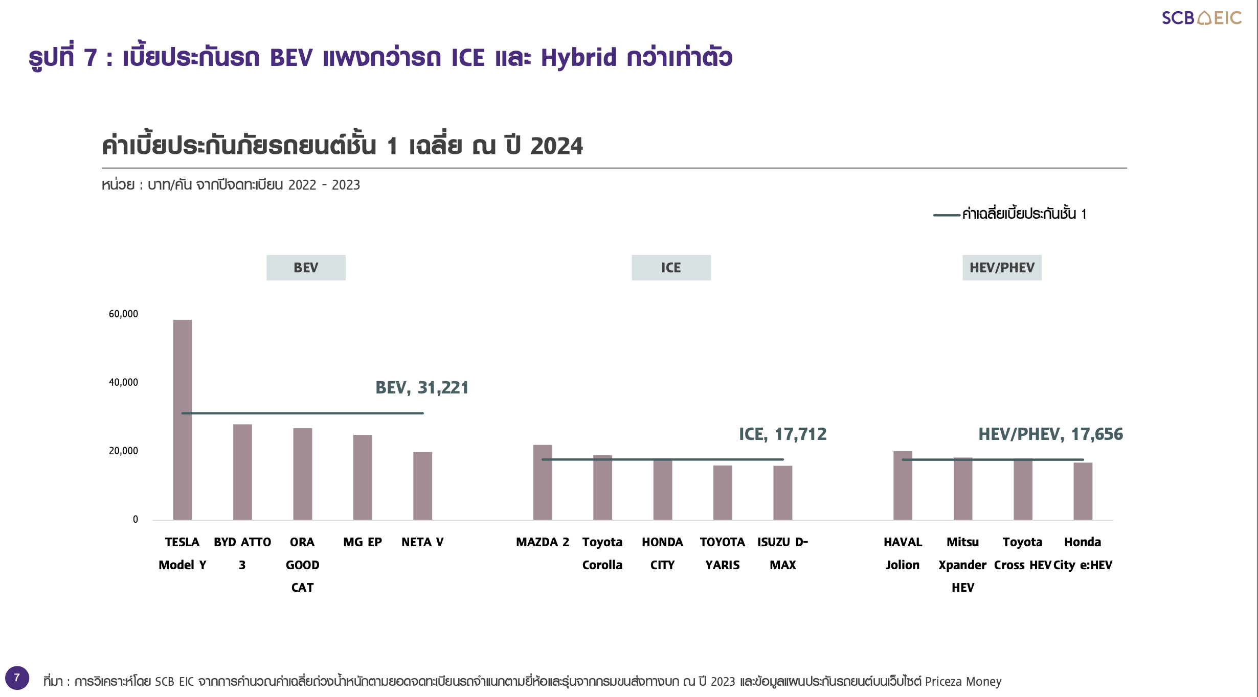 รูปที่ 7 : เบี้ยประกันรถ BEV แพงกว่ารถ ICE และ Hybrid กว่าเท่าตัว