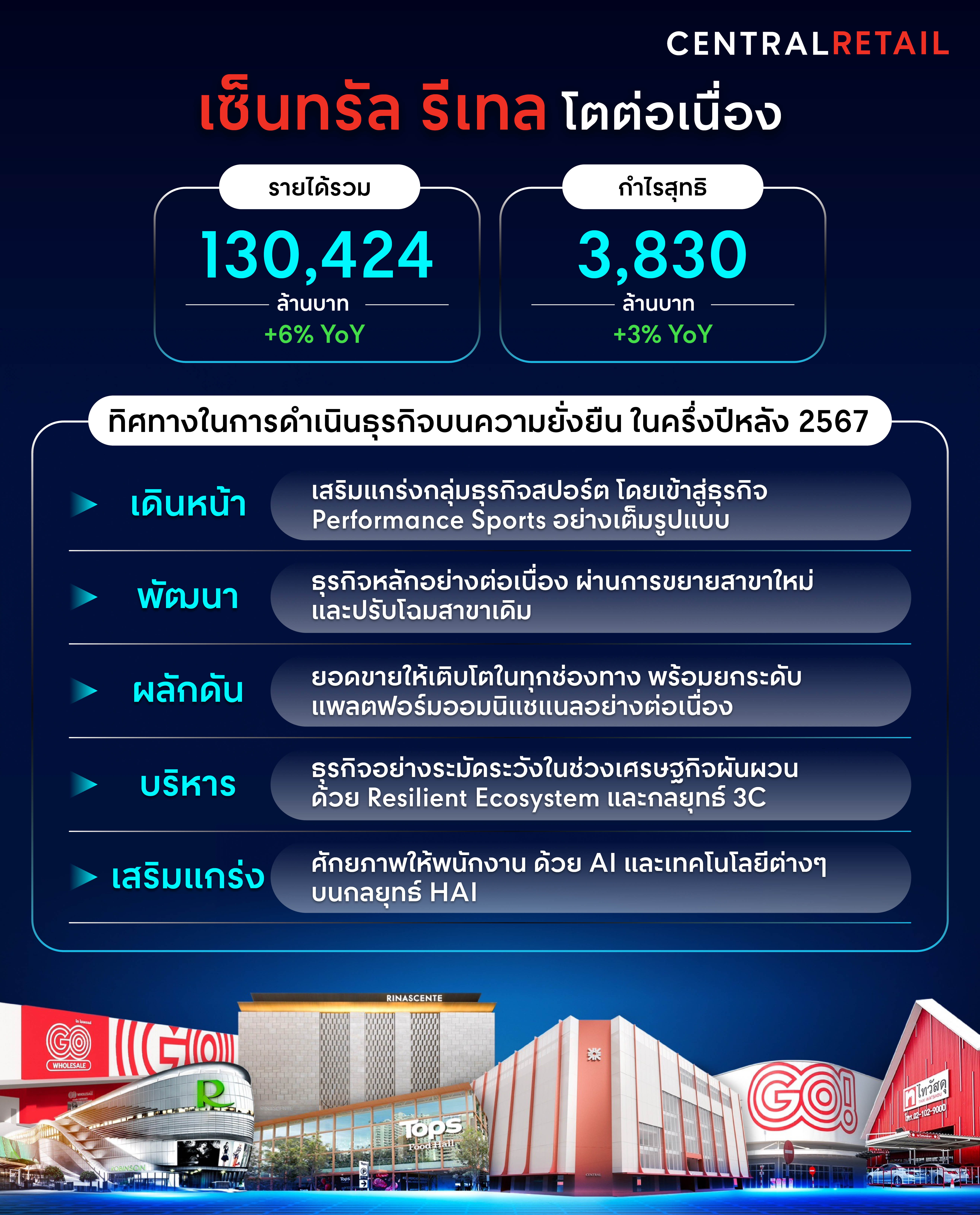 เซ็นทรัล รีเทล โตต่อเนื่อง กวาดรายได้ 130,424 ลบ. โต 6% ปิดดีลกลุ่มธุรกิจสปอร์ต พร้อมลุยธุรกิจครึ่งปีหลัง รับไฮซีซั่น–เศรษฐกิจเวียดนามบูม