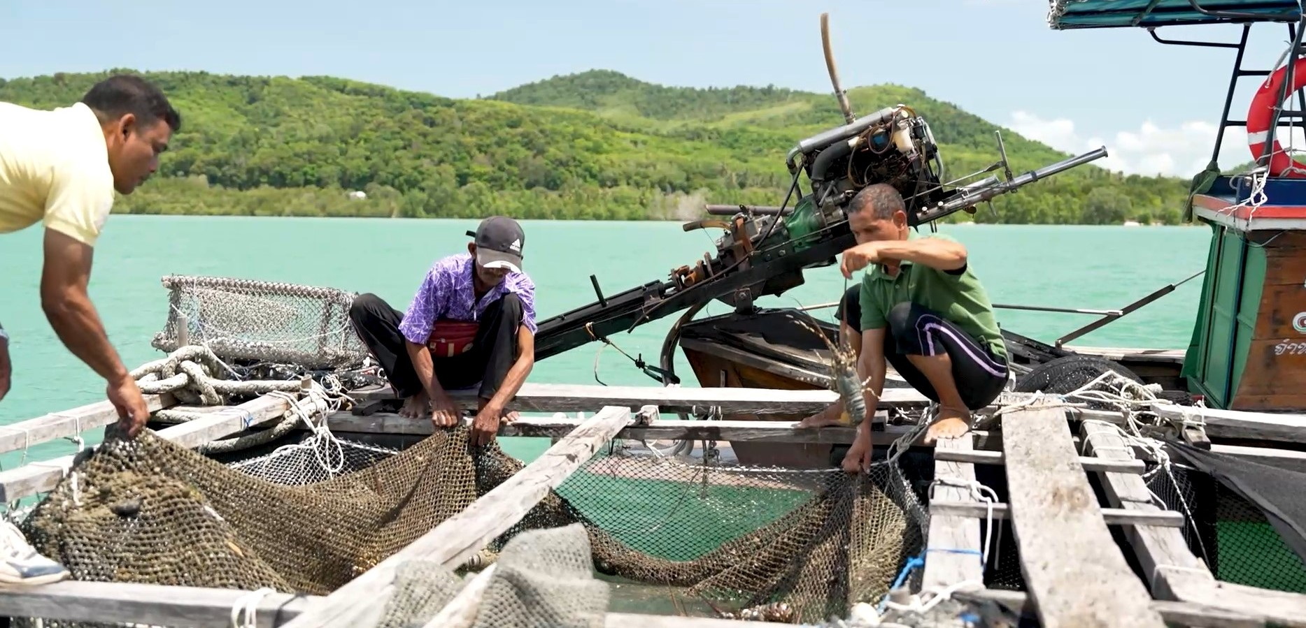 “ชาวบ้านจะเริ่มจากการออกไปจับกุ้งมังกรตัวเล็กที่เป็นลูกพันธุ์จากแหล่งธรรมชาติกลางทะเล แล้วเอามาเพาะเลี้ยงในกระชังที่อยู่กลางทะเล ซึ่งเป็นน่านน้ำของจังหวัดภูเก็ต โดยชาวประมงจะคอยให้อาหารที่เป็นปลาตัวเล็กๆ และเฝ้าเลี้ยงดูเป็นอย่างดี ด้วยวิธีการเลี้ยงแบบดั้งเดิมที่สืบทอดกันมาอย่างยาวนานของชาวเกาะยาว พอกุ้งโตได้ขนาดน้ำหนักตัวประมาณ 7-8 ขีด ก็จะนำออกมาขาย เพราะเป็นขนาดที่ร้านอาหารต้องการ เมื่อนำมาจัดวางในจานจะมีขนาดที่พอดีและสวยงาม” วา-กรรณิกา สาลี ตัวแทนหมู่บ้านชุมชนประมงพื้นบ้านเกาะยาว บอกเล่า