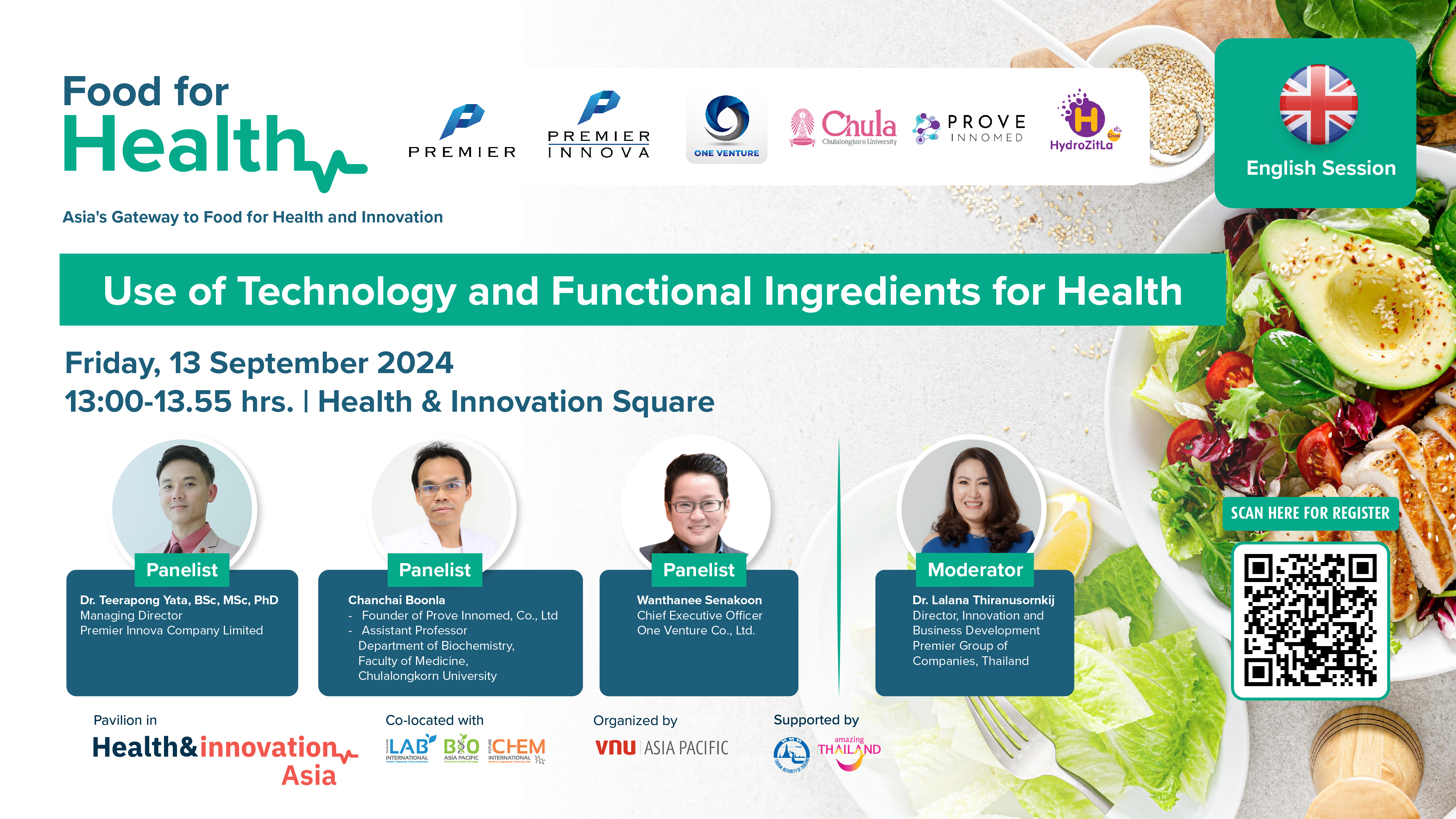 คุณปนัดดา ก๋งม้า รองประธานสายงานธุรกิจ วีเอ็นยู เอเชีย แปซิฟิค กล่าวว่า “การเปลี่ยนแปลงทางดิจิทัลของประเทศไทยกำลังเร่งตัวขึ้นผ่านโมเดลเศรษฐกิจไทยแลนด์ 4.0 โดยมีจุดมุ่งหมายเพื่อสร้างเศรษฐกิจดิจิทัล โดยให้ความสำคัญกับความเจริญรุ่งเรืองทางเศรษฐกิจ ความเป็นอยู่ที่ดีของสังคม ค่านิยมของมนุษย์ และการปกป้องสิ่งแวดล้อม การลงทุนด้านเทคโนโลยีครั้งใหญ่ได้นำไปสู่ความก้าวหน้าที่สำคัญในการเชื่อมต่อสมาร์ทโฟนและบรอดแบนด์ ซึ่งข้อมูลดิจิทัลสามารถเปลี่ยนคุณภาพและความยั่งยืนของสุขภาพและการดูแลสุขภาพได้ หากใช้อย่างเต็มประสิทธิภาพจะสามารถช่วยชีวิต ปรับปรุงสุขภาพ และความเป็นอยู่ที่ดี รวมไปถึงสนับสนุนระบบสุขภาพที่ยั่งยืนซึ่งให้บริการด้านสุขภาพที่ปลอดภัย คุณภาพสูง และมีประสิทธิภาพแก่ประชากรทั้งหมดในประเทศไทยและเอเชีย เราเห็นศักยภาพและโอกาสอันยิ่งใหญ่ในการนำงานนี้มาสู่กรุงเทพฯ และนั่นคือเหตุผลว่าทำไมเราจึงรู้สึกปลื้มปิติที่จะประกาศการจัดงาน Health and Innovation Asia และ Food For Health ขึ้นในประเทศไทยปีหน้านี้”