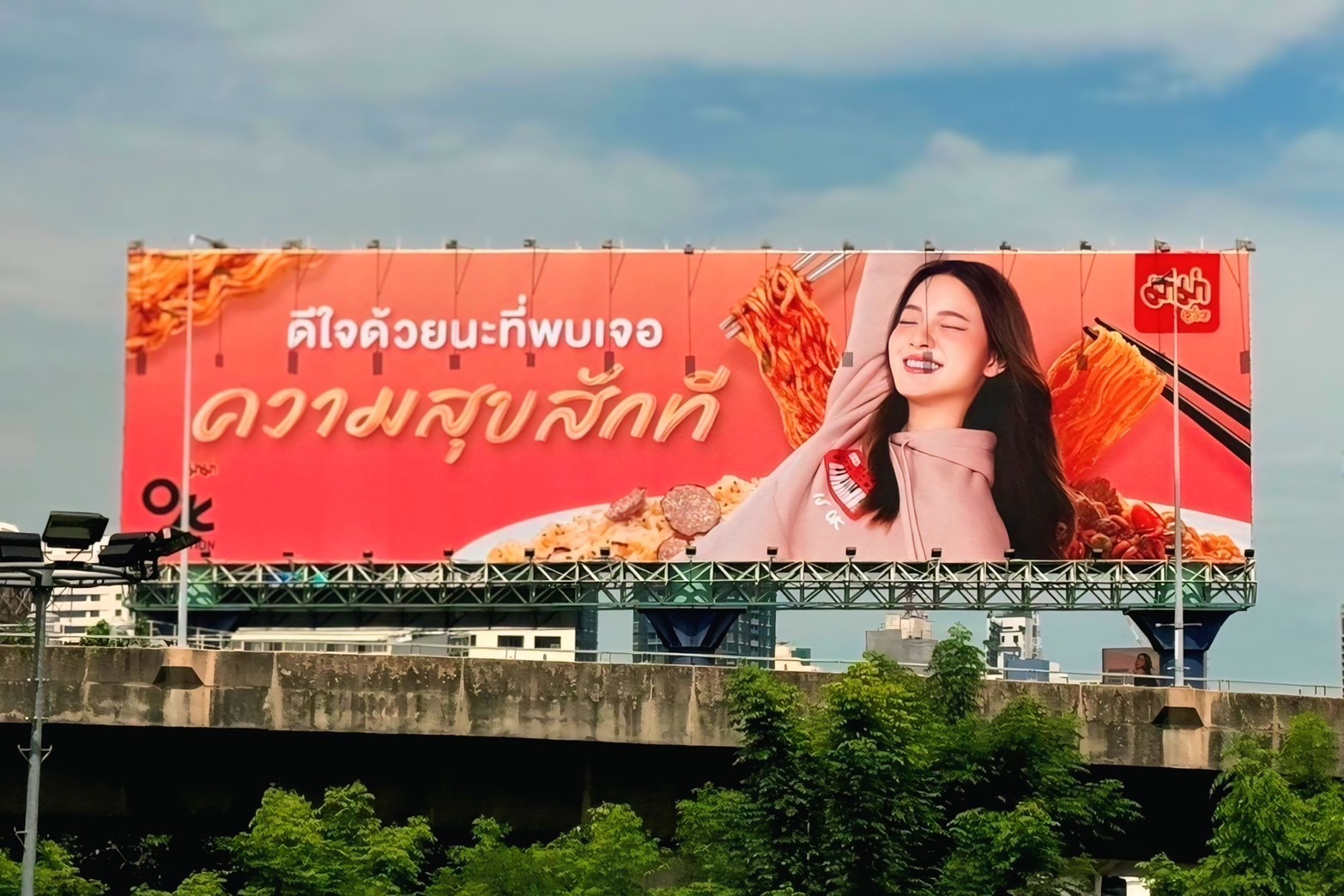 นอกจากนี้ มาม่า OK ยังใช้มนต์เสน่ห์ในความนิ่งของสื่อ Static – Out of home (OOH) ป้ายบิลบอร์ด ในการสื่อสารเมจเสจที่มีลายเซ็นของมาม่าอย่าง Copy กวน ๆ ในโลเคชั่นต่าง ๆ อีกด้วย