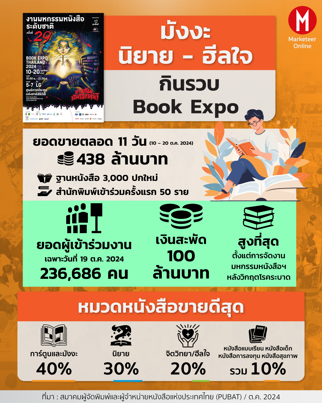 | ที่มา: สมาคมผู้จัดพิมพ์และผู้จำหน่ายหนังสือแห่งประเทศไทย (PUBAT) / ต.ค. 2024 | ||