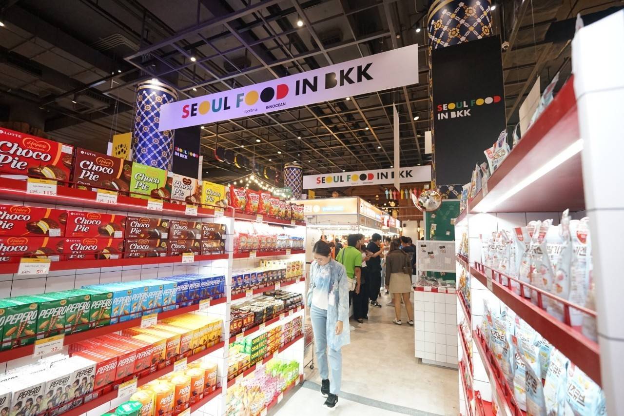 งาน ‘Seoul Food in Bangkok’ จัดขึ้นที่ไอคอนสยาม สถานที่ท่องเที่ยวสำคัญในกรุงเทพฯ เพื่อช่วยให้บริษัทเกาหลีขยายตลาดสู่เอเชียตะวันออกเฉียงใต้ เนื่องจากประเทศไทยเป็นประเทศเศรษฐกิจใหญ่อันดับสองในอาเซียน นิทรรศการ B2B จัดขึ้นตั้งแต่วันที่ 18 ถึง 20 ตุลาคม โดยมีบริษัทเข้าร่วมกว่า 92 ราย ที่ทรู ไอคอน ฮอลล์ (TRUE ICON HALL) ชั้น 7 ขณะที่ร้านป๊อปอัพ B2C จะจัดตั้งแต่วันที่ 18 ตุลาคม ถึง 3 พฤศจิกายน เป็นเวลา 17 วัน โดยมีบริษัท 31 แห่งเข้าร่วมที่สุขสยาม (SOOKSIAM) ชั้น G ไอคอนสยาม ในช่วงนิทรรศการ B2B มีผู้แทนจากเครือข่ายการจัดจำหน่ายหลักในอาเซียนและเอเชียตะวันออกเฉียงใต้ 300 ท่าน ได้รับเชิญให้เข้าร่วมประชุมธุรกิจเพื่อการส่งออก โดยมุ่งเน้นที่ผลิตภัณฑ์ที่มีความต้องการสูง นิทรรศการคาดว่าจะสามารถจัดการประชุมทางธุรกิจรวมทั้งหมด 1,600 ครั้ง ส่วนร้านป๊อปอัพ B2C ที่ตั้งอยู่ในสุขสยาม ชั้น G ซึ่งเป็นพื้นที่ในไอคอนสยามที่มีผู้เยี่ยมชมมากที่สุด ได้เปิดโอกาสให้บริษัทอาหารและเครื่องดื่มและการค้าปลีกสามารถเข้าถึงลูกค้าประมาณ 200,000 ราย และสามารถสร้างยอดขายผลิตภัณฑ์ได้ถึง 400,000 เหรียญสหรัฐ หรือ 13,507,002 บาท นอกจากนี้ กิจกรรม ‘Soul Spot’ ซึ่งมี AI นำเที่ยวอธิบายสถานที่ท่องเที่ยวในกรุงโซล ก็ได้รับความนิยมเช่นกัน ซึ่งเกิดจากความร่วมมือกับรัฐบาลกรุงโซล
