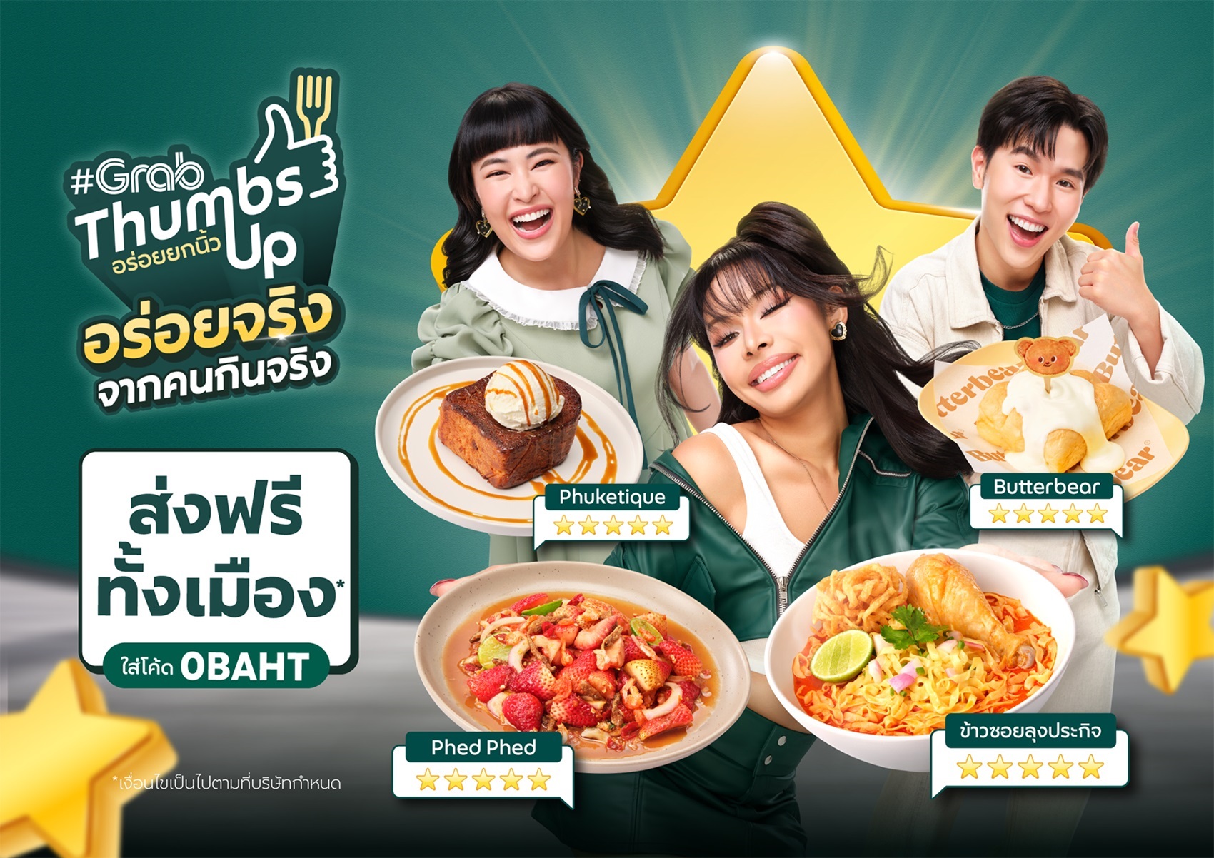 “สำหรับในช่วงไตรมาสสุดท้ายของปีนี้ แกร็บฟู้ดเตรียมเปิดตัวแคมเปญใหม่ล่าสุด #GrabThumbsUp อร่อยจริง จากคนกินจริง เพื่อตอกย้ำจุดแข็งของแฟลกชิปแบรนด์อย่าง #GrabThumbsUp ที่คอยคัดสรรร้านอร่อยจากทั่วประเทศที่มีคะแนนเรตติ้งสูงและได้รับการรีวิวจากคนกินจริงมาแนะนำให้ผู้ใช้บริการ ซึ่งรวมถึงเมนูโค-ครีเอชันจากหลายแบรนด์ชั้นนำที่เตรียมทยอยเปิดตัวเพื่อเอาใจสายกิน มาพร้อมความคุ้มค่าด้วยการมอบส่วนลดคืนสูงสุดถึง 500 บาทสำหรับการสั่งอาหารในครั้งต่อไป พร้อมโปรฯ เด็ดส่งฟรีทั้งเมือง* เพียงใส่โค้ด 0BAHT ตั้งแต่วันที่ 28 ตุลาคม – 24 พฤศจิกายนนี้” นายจิรกิตต์ ทิ้งท้าย